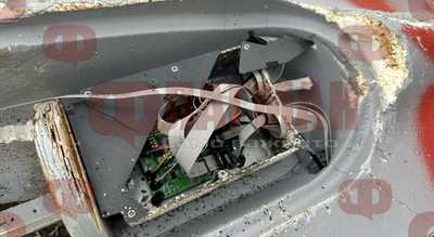 В кадрите се вижда устройство, чийто произход не можем да установим по частите от конструкцията му. Вижда се управляващ чип, батерия, специален регистрационен номер (0135-466) (3)-(5), както и множество кабели, свързващи отделните компоненти.