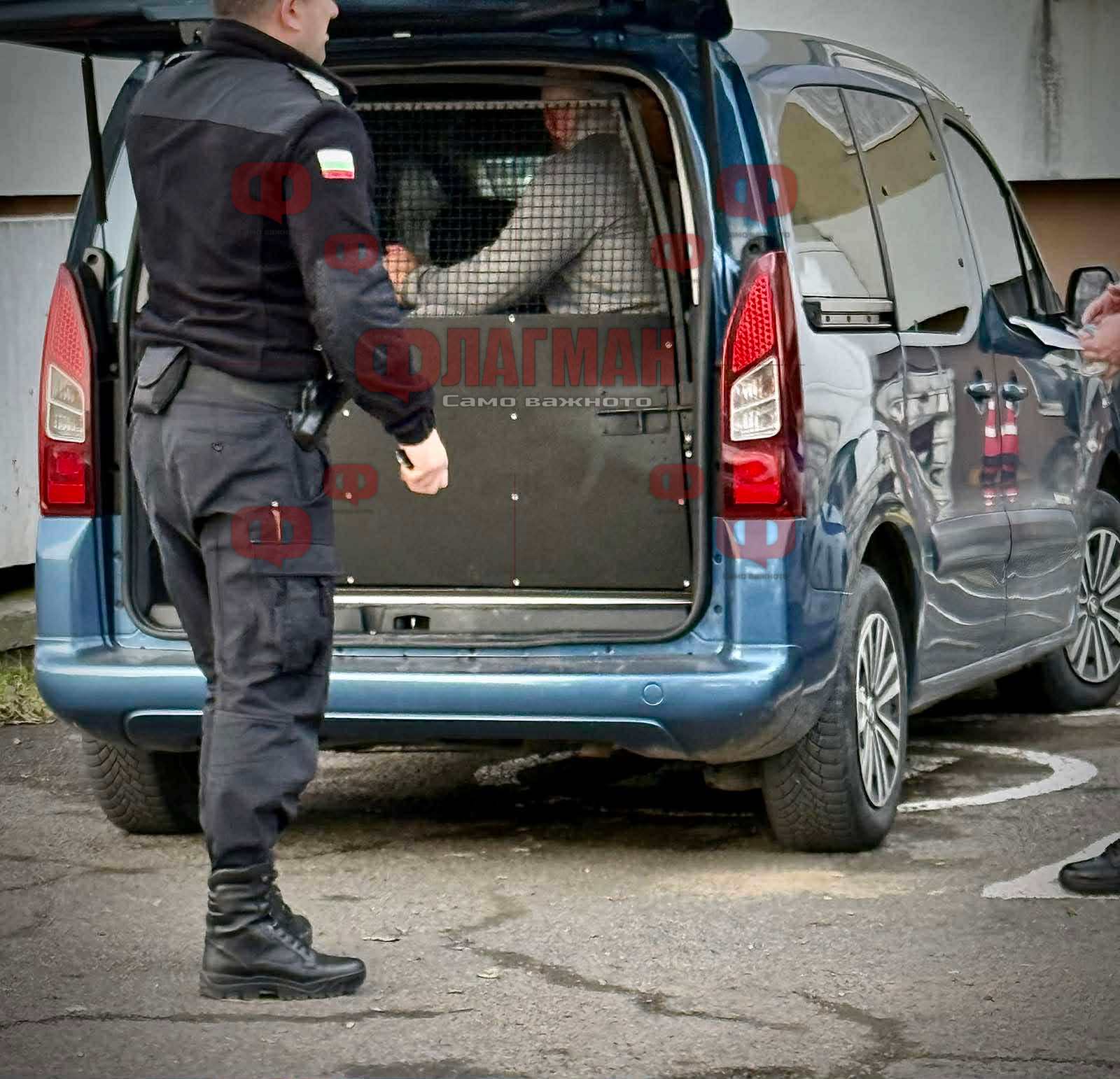 Репортер на Флагман.бг засече Дърлянов на входа на районното управление в Поморие с белезници на ръцете и с малко черно сакче, а минути по-късно бе откаран от служители на Национална агенция "Изпълнение на наказанията" с автомобил с решетки.
