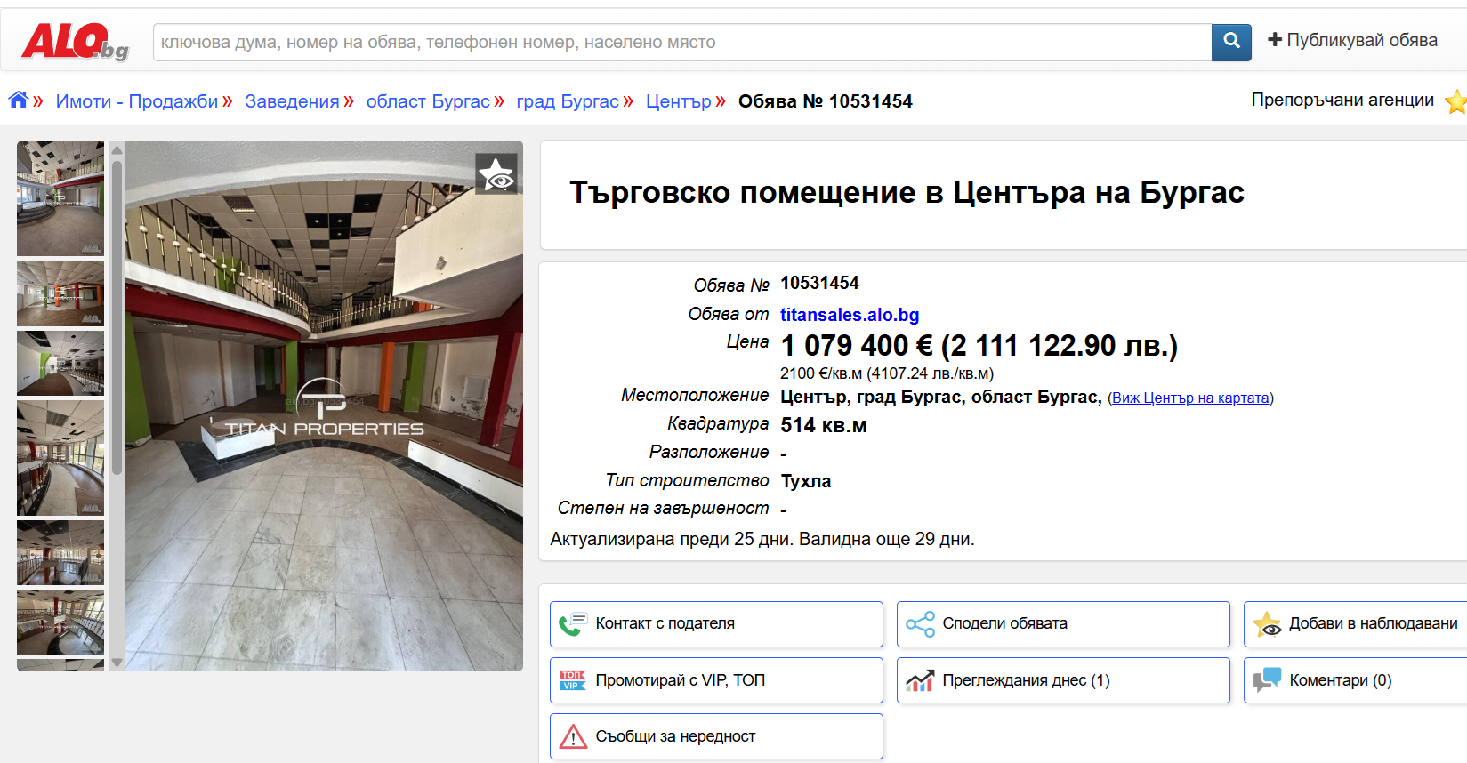Продават два топ имота на пъпа на Бургас за по 1 млн. евро