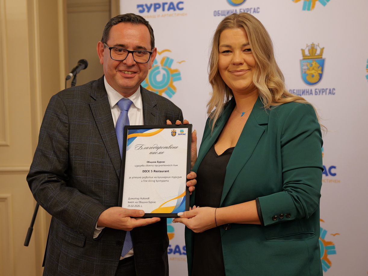 Кметът на Бургас Димитър Николов благодари на бизнеса за усилията в утвърждаването на града като водеща туристическа дестинация. „С труда си помагате на Бургас и региона да се развиват като успешна туристическа локация. Правите града по-красив, по-търсен, по-вкусен и по-желан. Благодаря и на колегите от администрацията, които остават в сянка, но полагат сериозни усилия за развитието на туризма“, заяви Николов.