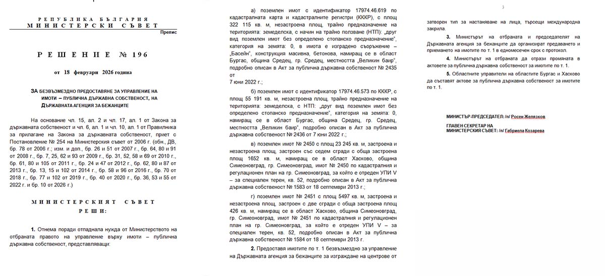 Правителството дари имоти в Средец и Симеоновград за изграждане на бежански центрове