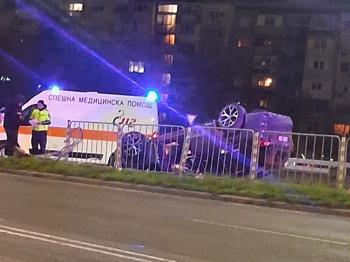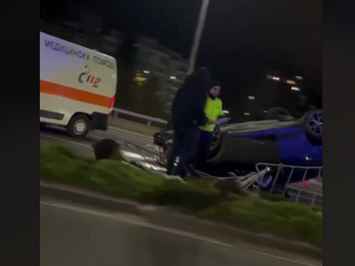 Брутална среднощна катастрофа! Кола се преобърна край „МакДоналдс“ (ВИДЕО)