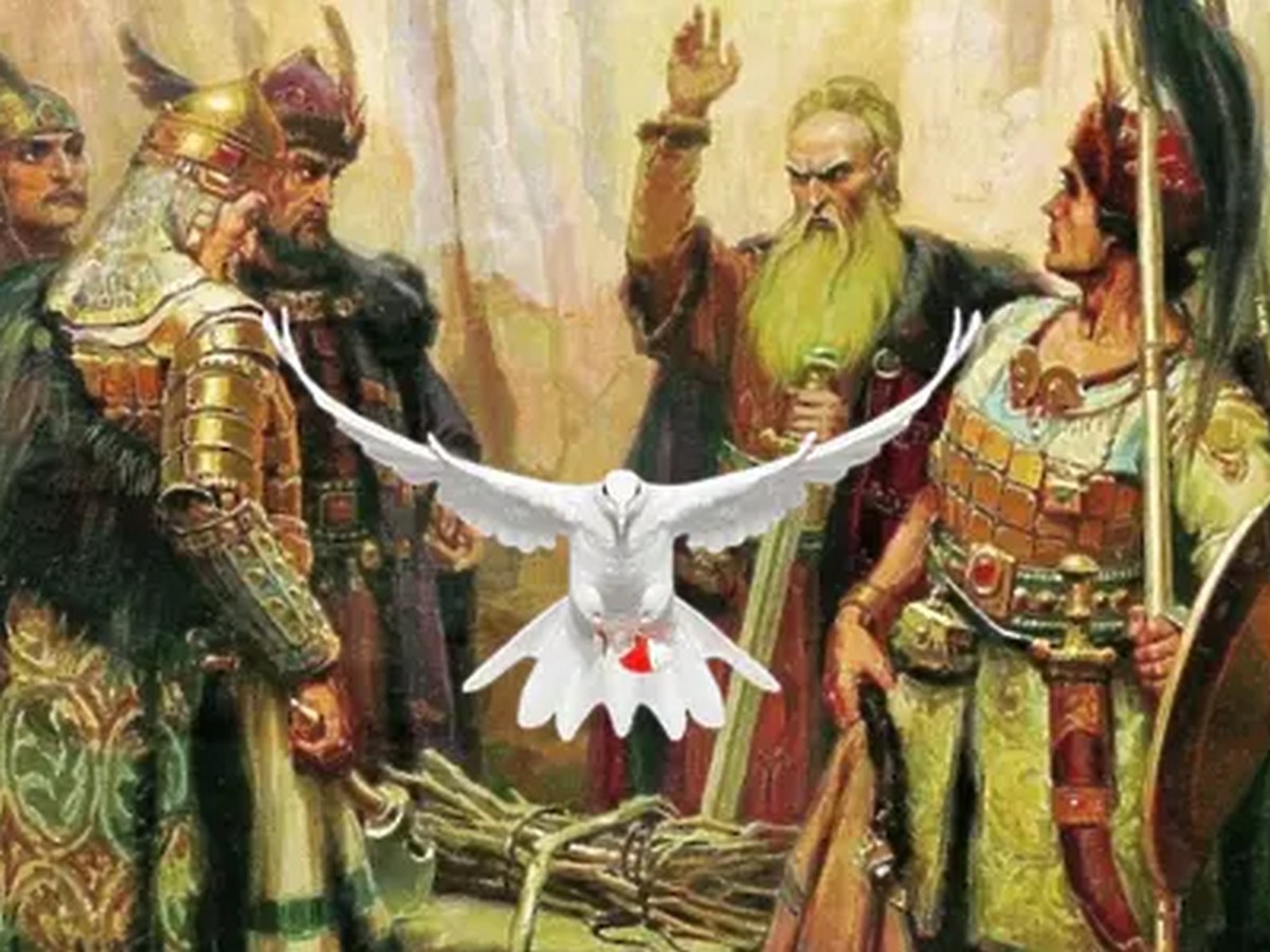 Сестрата на Аспарух, Хуба, сънувала сън, от който разбрала за трудностите на брат си и му изпратила желаната билка, вързана за крака на сокол. По време на полета връвта прорязала крака на птицата и част от нея се обагрила в алено-червено. Когато соколът се приземил при Аспарух, той взел снопчето копър и запалил жертвения огън. Бяло-червената връв той вързал на гърдите си за здраве и благополучие.