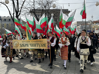 Този следобед централната пешеходна улица на Бургас - "Алеко Богориди", беше изпълнена с празнична атмосфера. Няколкостотин души, сред които ученици от различни гимназии и множество жители на морския град, се включиха в организираното походно шествие от сградата на Община Бургас до паметника на Васил Левски в Морската градина.