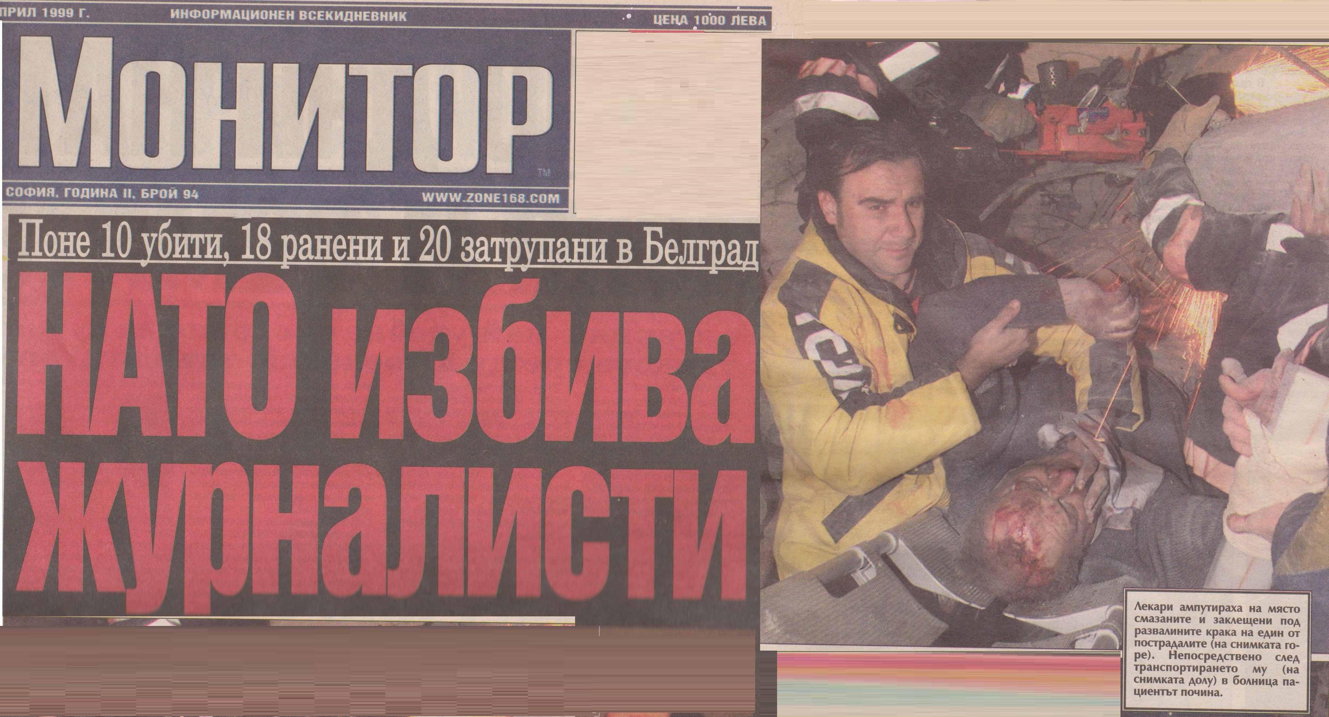 На 23 април 1999 г. американците удариха РТС посред нощ. Поразена бе основната сграда в Белград, където се намираха студиата и излъчвателната апаратура. По това време там на работя бяха около 80 човека, които осигуряваха денонощното излъчване. Имаше и двама дежурни журналисти, които да се включат с извънредна емисия при необходимост – война бе все пак. На място американците убиха 14 от тях. Двама си отидоха в ужасни мъки. Единият бе заклещен от паднало огромно желязо. Медицинският екип бе принуден да ампутира и двамата му крака, за да го освободи. По пътя към болницата той издъхна.