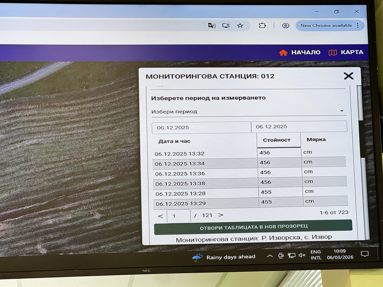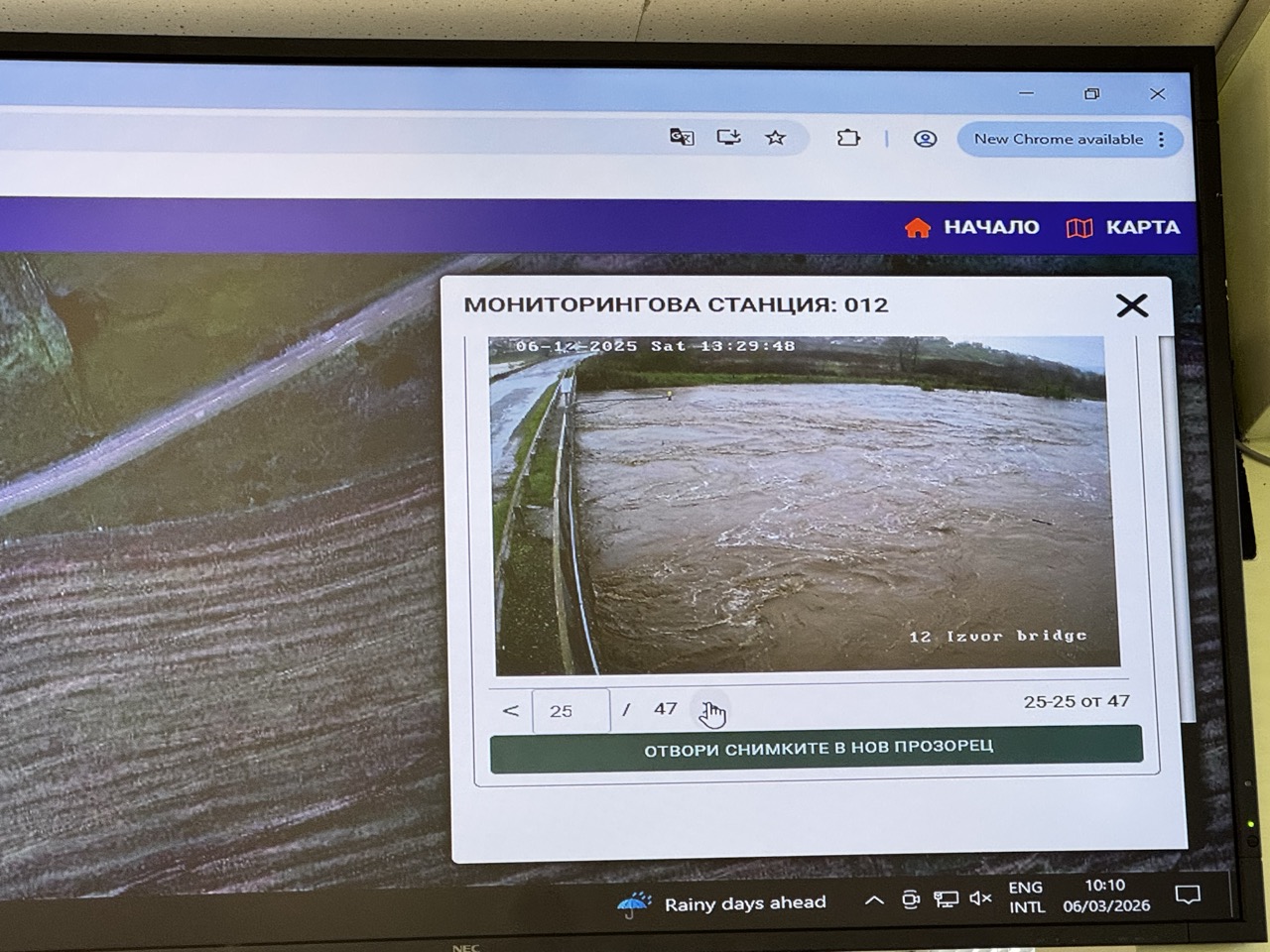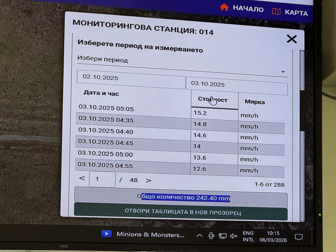 По време на посещението ни специалистите от контролния център показаха и интересни статистически данни. Например при река „Черниците“ на 3 октомври, по време на голямото бедствие в областта са отчетени над 240 литра валежи на квадратен метър.