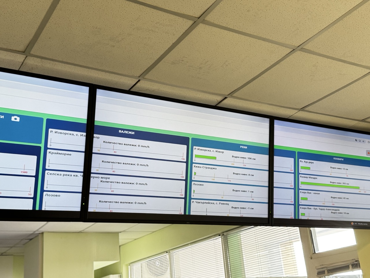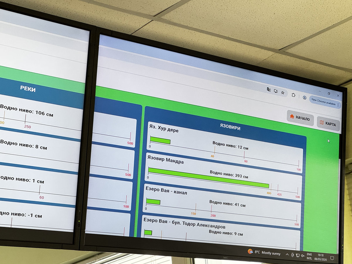 Екип на Флагман.бг посети контролния център, от който се следи и управлява рискът от наводнения в Бургас. Оттам специалисти наблюдават в реално време редица ключови показатели, свързани с водните обекти и метеорологичната обстановка в региона. В центъра се следят количеството на валежите, нивата на реките и язовирите, както и състоянието на различни водни съоръжения.
