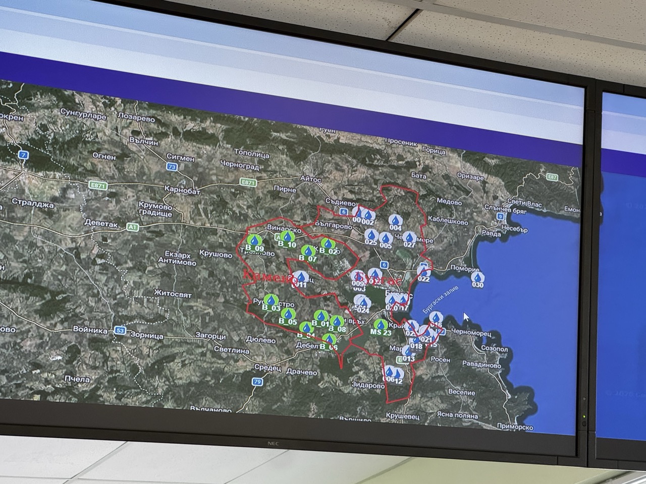 Всяка от мониторинговите станции, разположени в различни точки на региона, е оборудвана със специализирани датчици. Такива станции има в река Изворска, село Извор, Крайморие, Селска река в квартал Черно море, Лозово, Акве Калиде, Поморие, вилна зона „Черниците“, Дермен дере, квартал Рудник, река Малката река, село Равнец, Долно Езерово, Ченгене скеле, Горно Езерово и Сарафово.