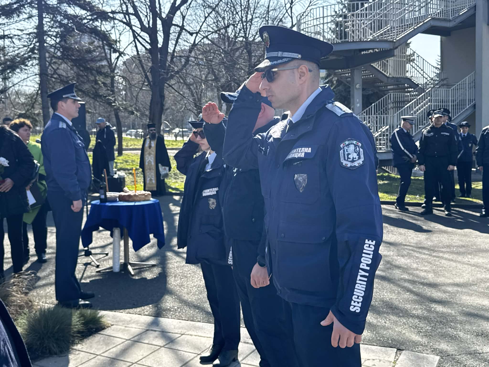 Сред официалните гости на събитието бе зам.-министърът на МВР Калоян Калоянов, директорът на ОДМВР-Бургас ст. комисар Николай Ненков, областният управител на Бургас Добромир Гюлев, зам. кметът Станимир Апостолов, началникът на РДПБЗН - Бургас старши комисар Николай Николаев, колеги и приятели на доблесните полицейски служители от Първо РУ-Бургас.