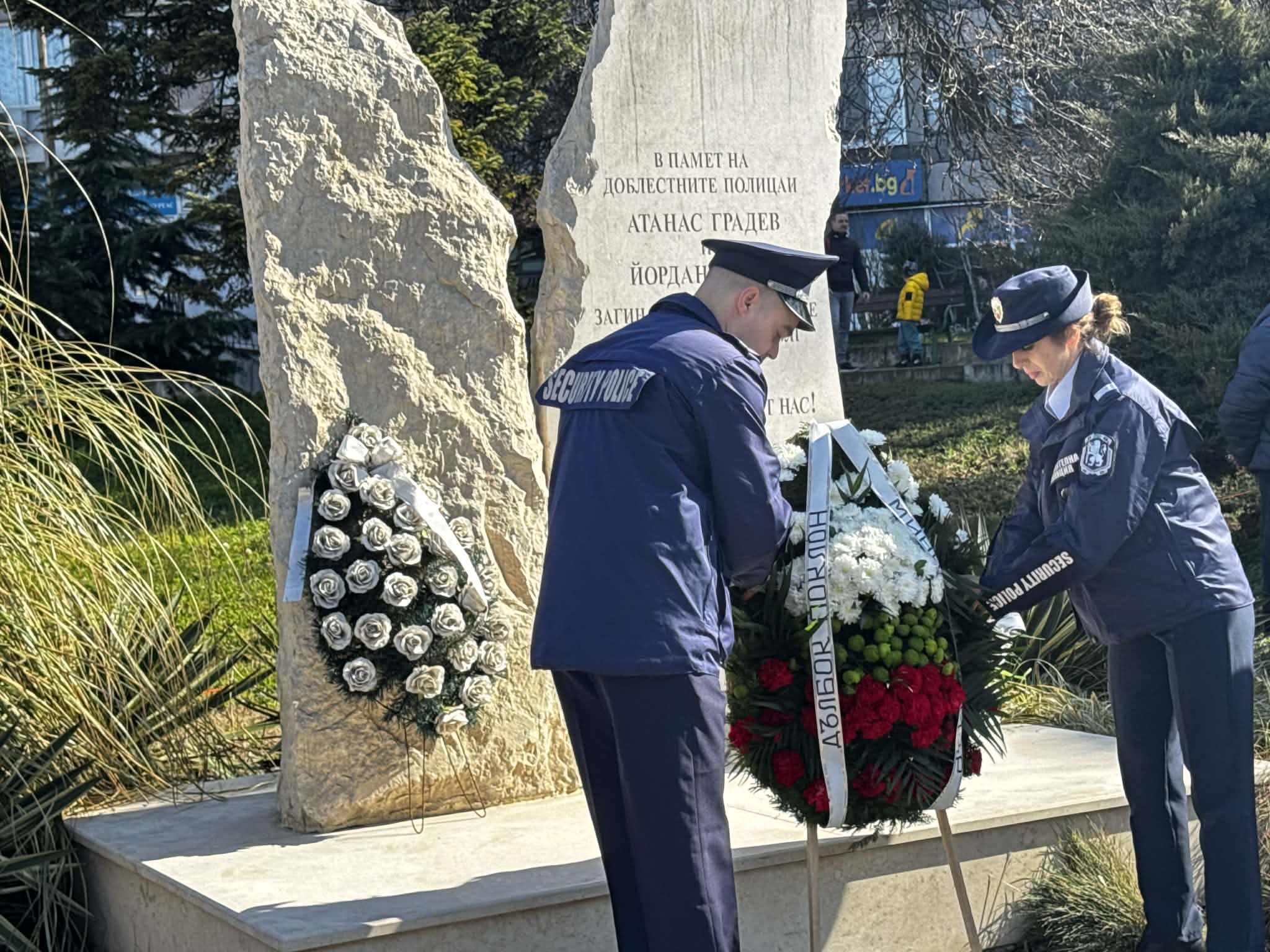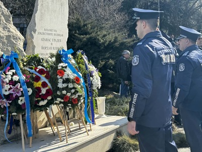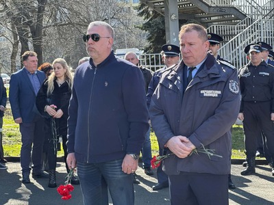 Бургас сведе глава пред загиналите в служба полицаи Йордан Илиев и Атанас Градев, положиха венци и цветя пред паметника на "Трапезица"
