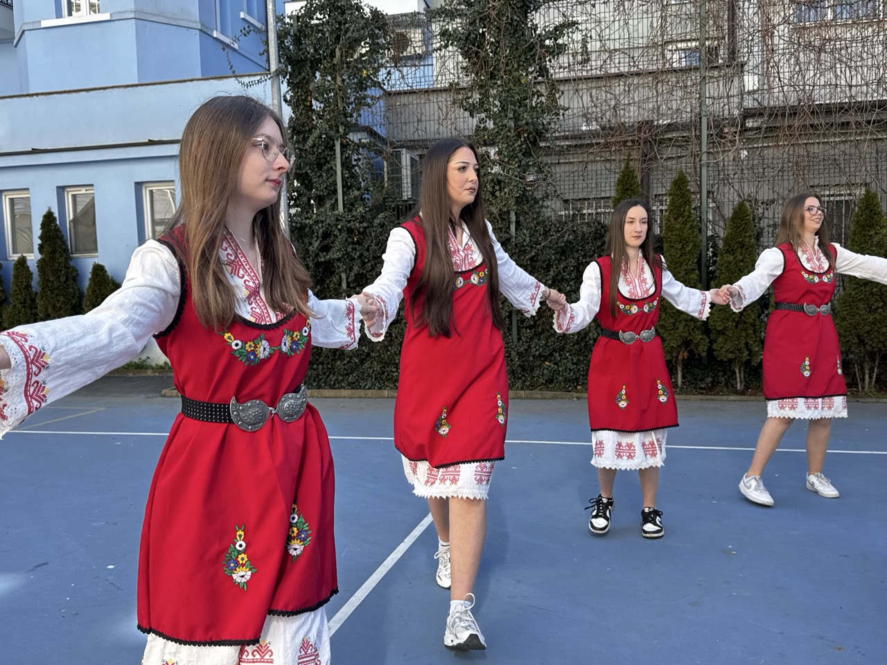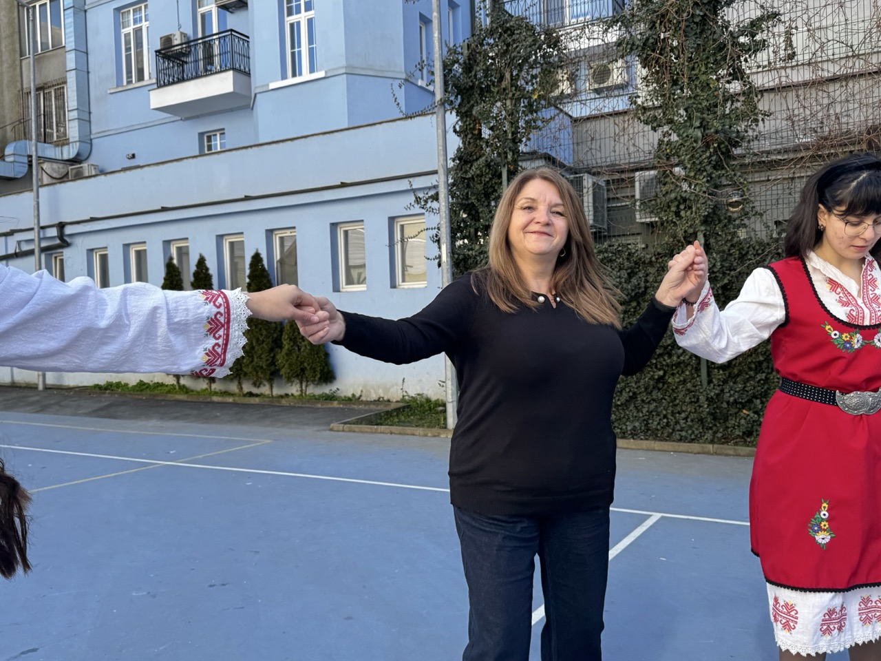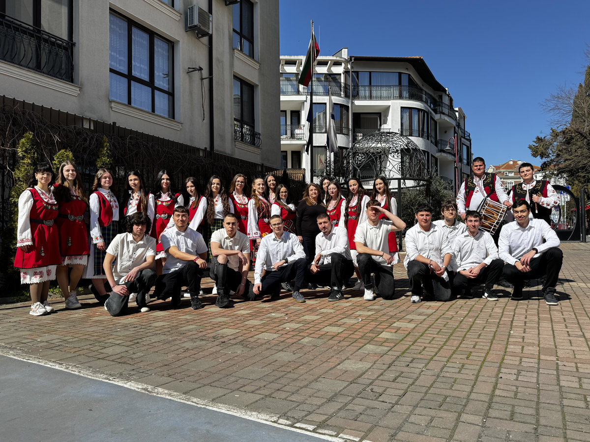 Малко след 12:30 часа бъдещите абитуриенти се събраха в двора на училището, където подготвиха истински малък празник. С голям плакат с надпис „Ще дойдете ли с нас на бала, г-жо Кръстева?“ учениците отправиха своята покана към преподавателката. Атмосферата беше допълнена от звука на гайди и пищно българско хоро, в което се включи целият клас с преподавателят си.