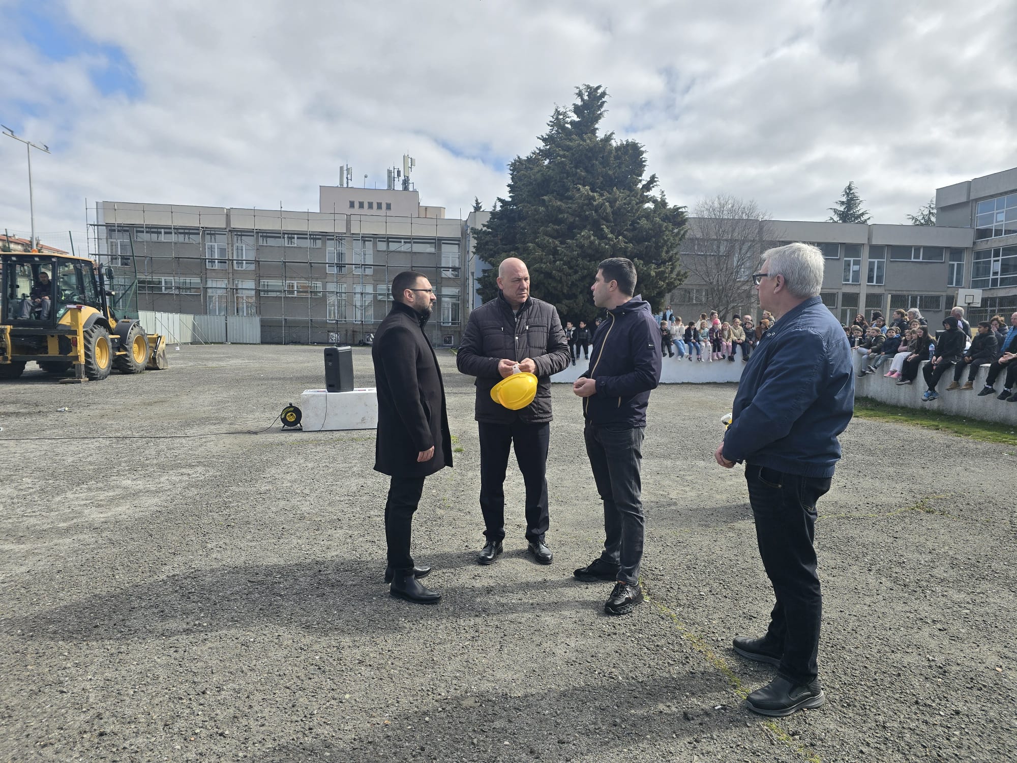На церемонията присъстваха общински съветници и много деца от училището, които с щастие наблюдаваха началото на жадуваната от тях спортна зала.