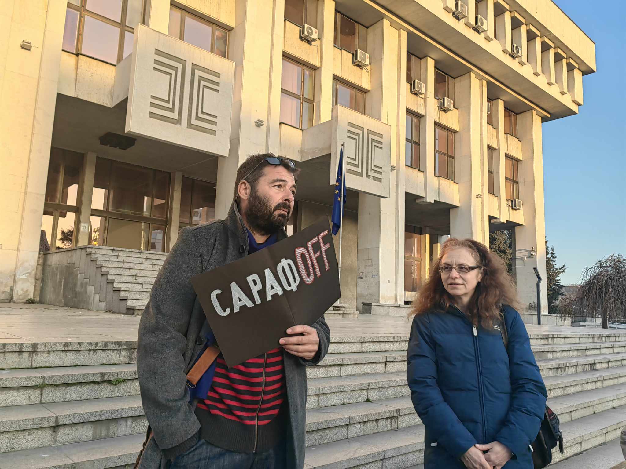 В демонстрацията имаше и друг човек, представил се с малкото си име Живко. Той носеше плакат: „Сарафoff“, очевидно насочен към и.ф. главен прокурор Борислав Боби Сарафов.