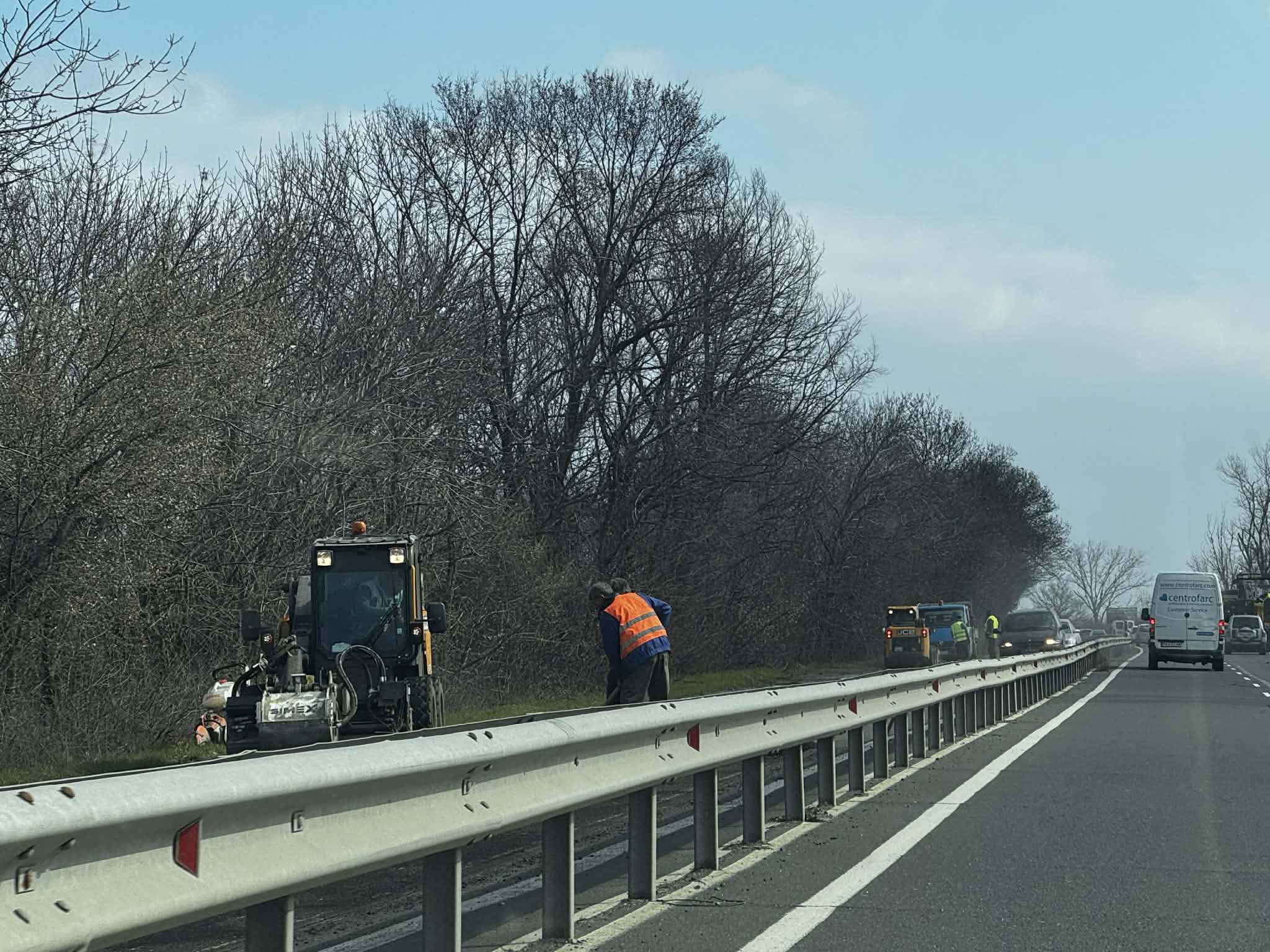 От близо седмица по трасето се извършват ремонтни дейности, свързани с влошеното състояние на пътната настилка. Участъци от пътя се рехабилитират временно чрез полагане на асфалтови кръпки, което налага ограничаване на движението и преминаване на автомобилите поетапно в една лента.