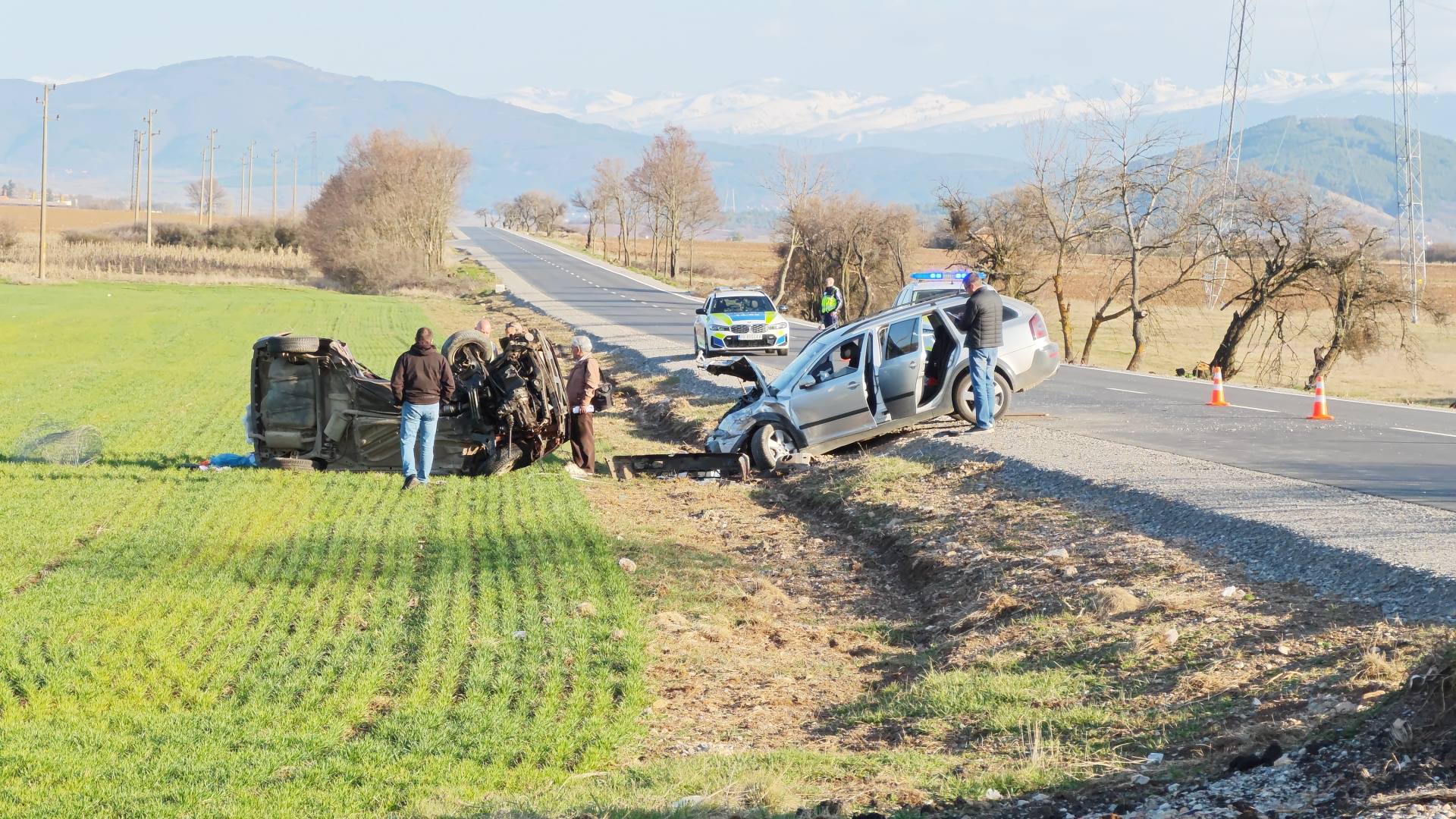 Пострадалите са транспортирани в болница в критично състояние. Районът остана отцепен за часове, докато течаха огледите на криминалистите. Тепърва ще се изясняват причините за инцидента и дали става въпрос за неправилна маневра или превишена скорост.