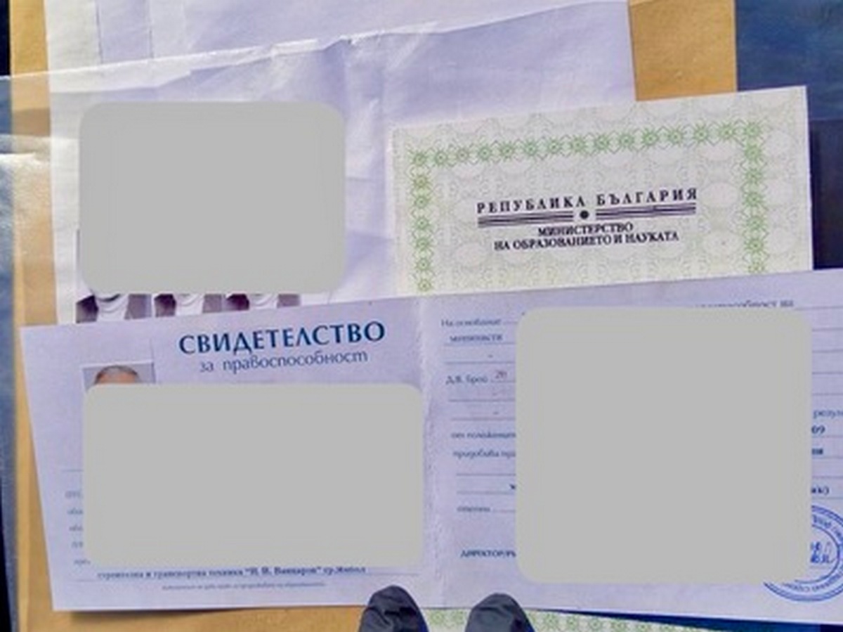 Сред откритите фалшиви документи са диплома за завършено средно образование, удостоверение за психологическа годност и свидетелство за правоспособност за работа с подемна строителна техника.