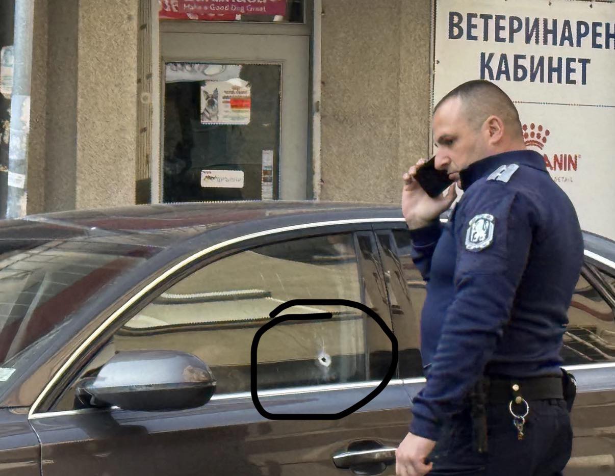 Изстрелът от Аудито, паркирано на ул. „Поп Георги”, на около 300 метра от чейндж бюрото за малко не отнема живота на млад мъж, който върви по тесния тротоар откъм магазина за перилни препарати. Той ясно чува пукот като от пиратка, оглежда се, но не вижда нищо димящо около краката си. Пешеходецът е отивал до близкия павилион „Тришър” за цигари и се връща 5 минути по-късно по същия маршрут. Тогава вижда магазинерката от обекта с перилните препарати да крещи неистово: „Убиха го, убиха го! В колата!”. Мъжът вижда и дупката на стъклото на автомобила, както и още по-голямата пробойна - с диаметър над 1 см - по витрината на магазина. Впоследствие експертизата ще покаже, че проектилът се е забил чак в отсрещната стена на обекта, която е откъм ул. „Св.св. Кирил и Методий”. Така потенциални жертви са били още магазинерката и намираща се вътре клиентка.
