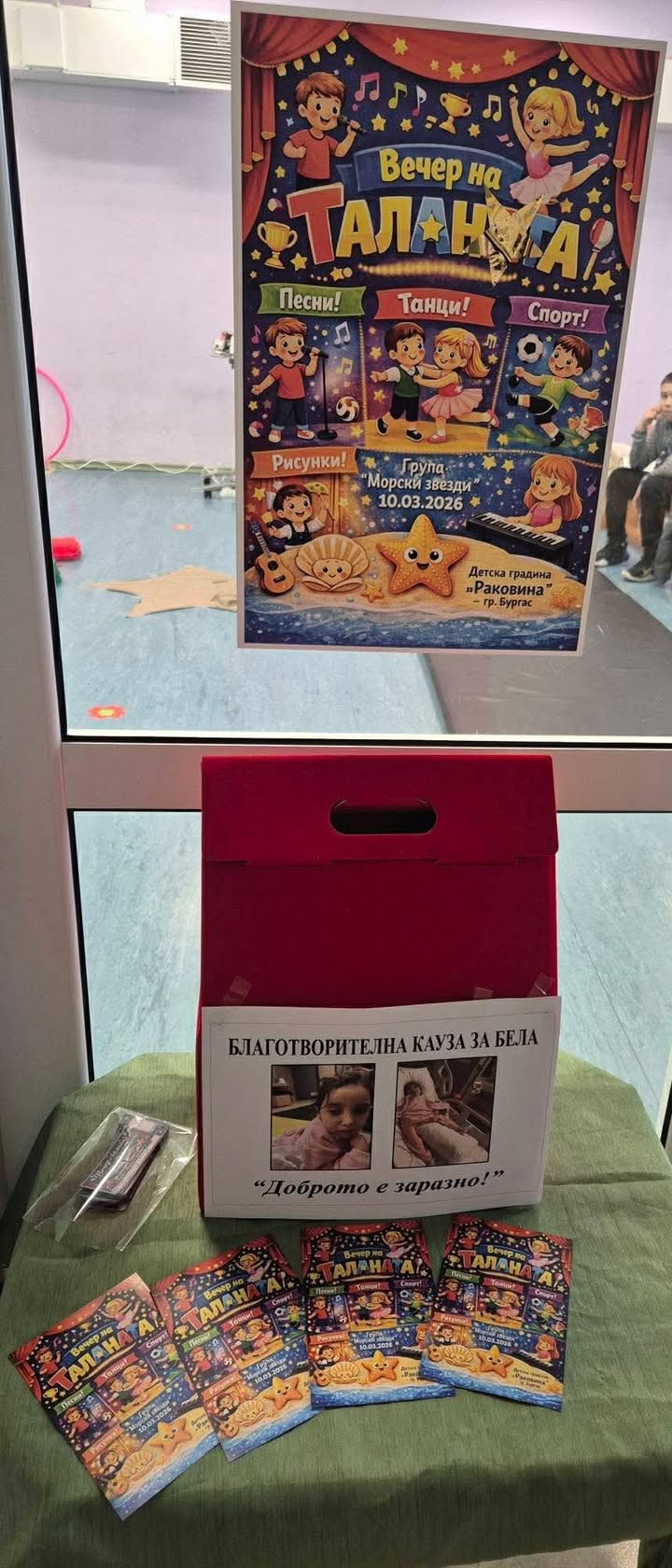 Благотворителната вечер „Талантът на сърцето“, организирана от група „Морски звезди“ на ДГ „Раковина“, премина под мотото на каузата на Цанов „Доброто е заразно“. Събитието събра малки таланти, които показаха своите умения в различни области на изкуствата, обединени от благородната цел да подкрепят Бела от Варна.