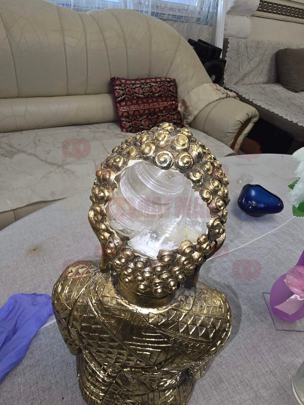 Наркобосовете от бургаския кв. Победа, които служителите на ОДМВР атакуваха тази сутрин, се оказа, че са криели дрогата в статуетка на Буда. Красивата фигура седяла на масата в стая на първия етаж от къщата на ул. "Опълченска" №13. При претърсването на имота ченгетата забелязали, че в задната част от главата на индийския духовен учител има несъразмерни парченца.