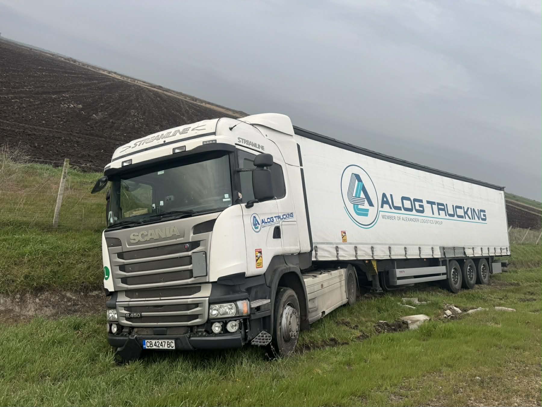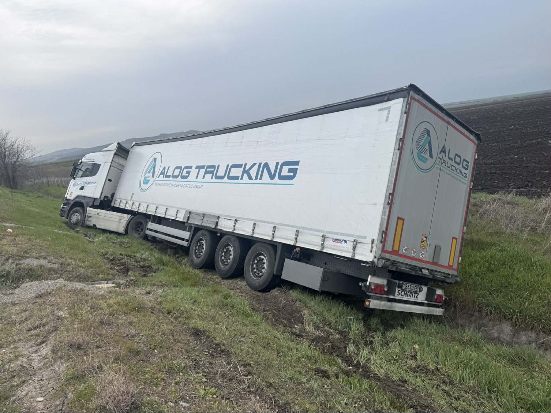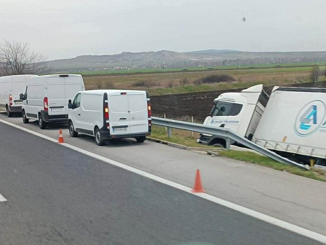 След засечка от турски тир шофьорът е загубил контрол над тежката машина и е излязъл от пътното платно