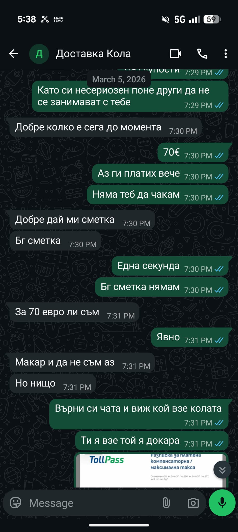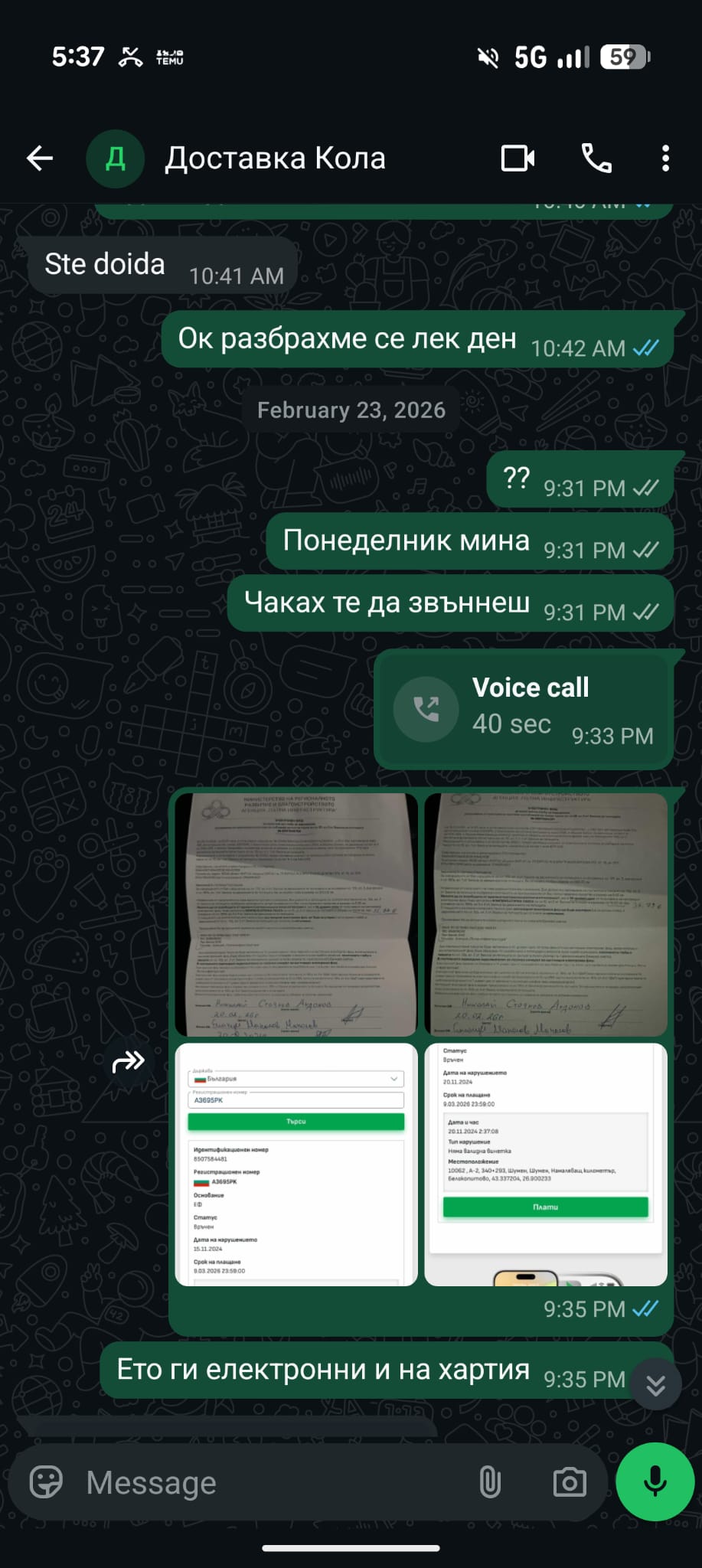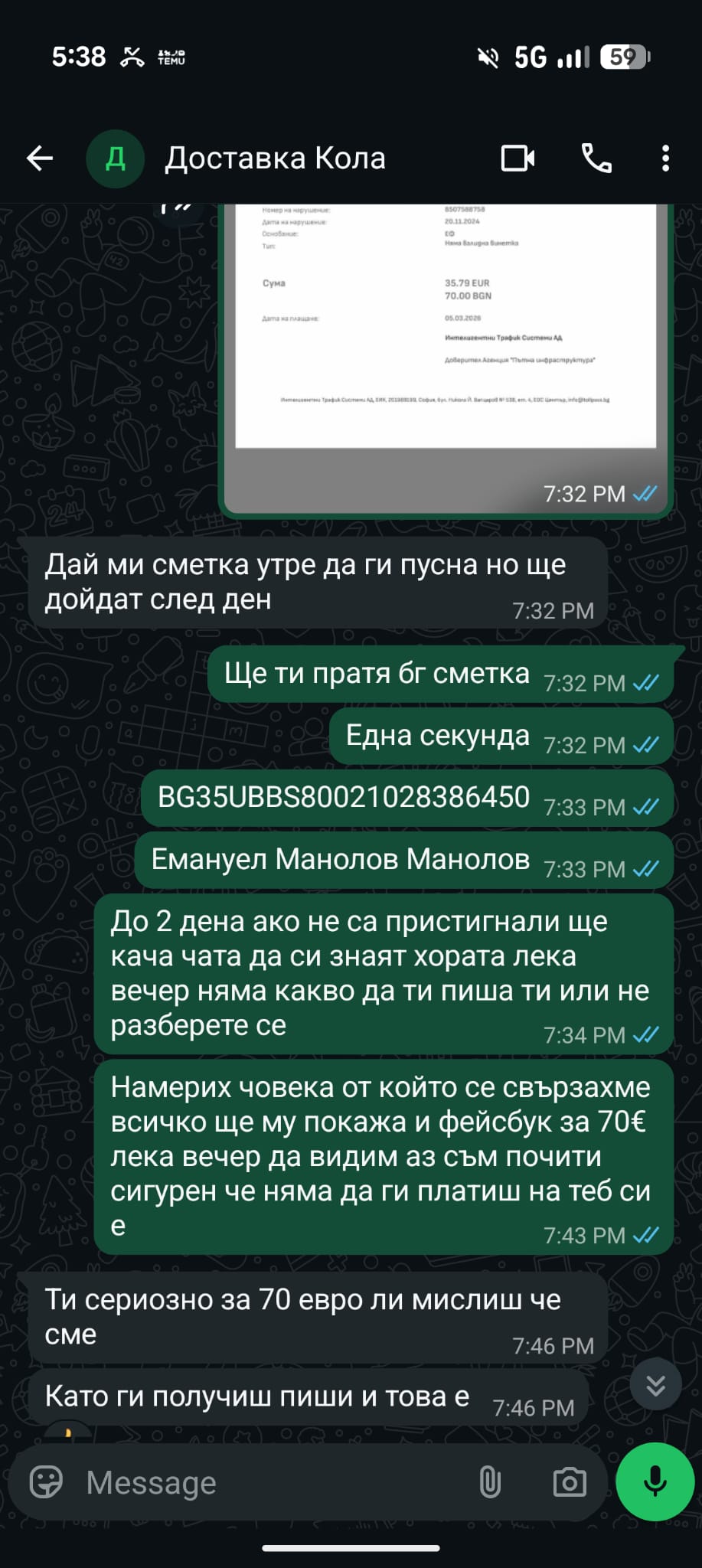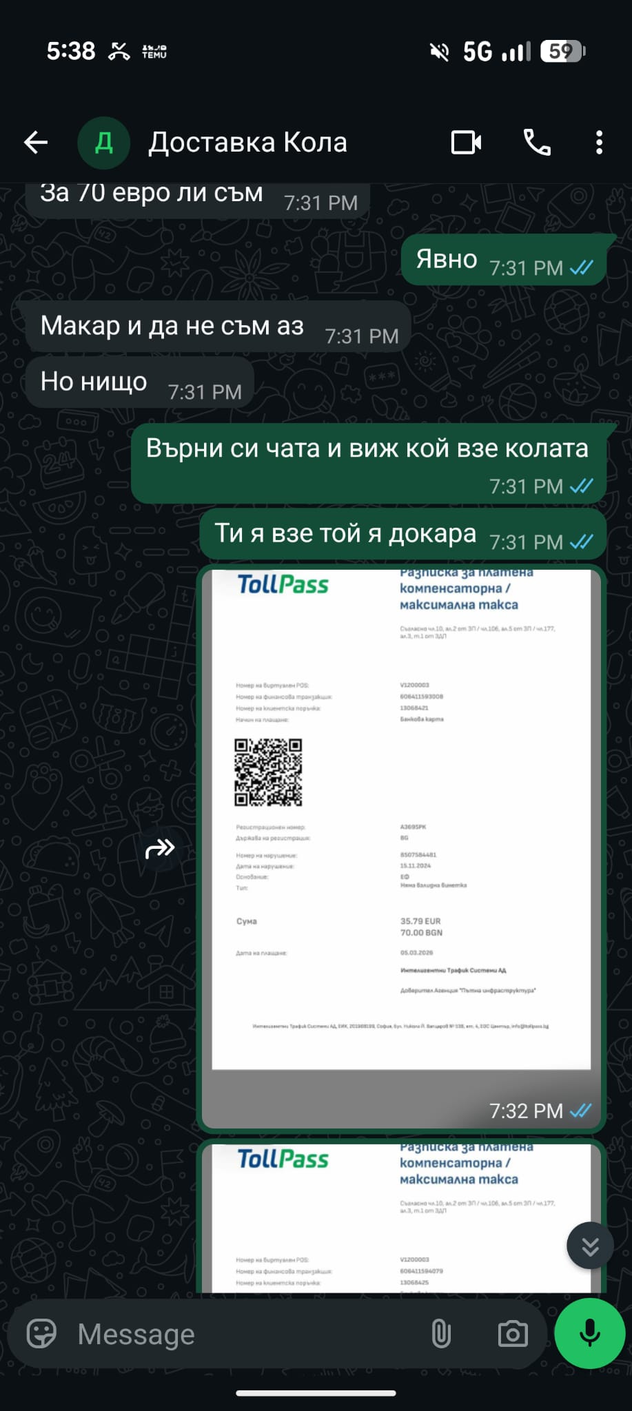Тонев посочва, че тези хора са администратори в големи групи за пътувания и активно цензурират негативни мнения, за да продължават да привлекат нови жертви. Той разполага с пълен архив от чатове и копия от глобите, които доказват разминаването в локациите и датите. Бургазлията предостави на Флагман всички скрийншотове (ВИЖ ДОКУМЕНТИТЕ ПОД ТЕКСТА)