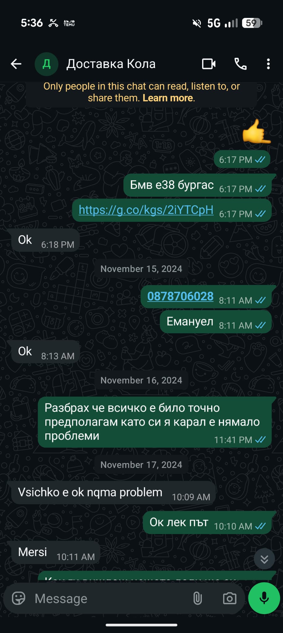„В продължение на дни шофьорът ме лъжеше чрез WhatsApp, че "всичко е наред", че пътува, а по-късно – че бусът му се е счупил в Германия. В действителност, колата ми е била карана на ход в България без мое съгласие“, разказва Тонев. „Ние се бяхме уговорили по телефонно обаждане, че колата няма винетка и отново бусчето се беше развалило и той трябва да я кара от локацията в Бургас до Сливен на ход на 16 ноември.“