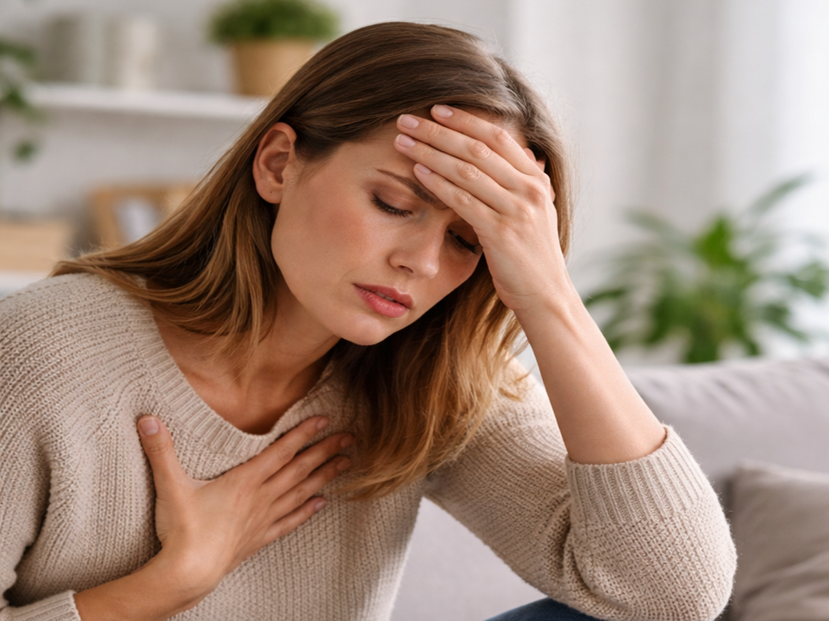 Задухът е друг важен знак. Mayo Clinic посочва, че недостигът на въздух е симптом, който изисква внимание, а MedlinePlus подчертава, че затрудненото дишане често е медицински спешно състояние, особено ако е внезапно, силно или се влошава. Това важи с още по-голяма сила, когато задухът е съчетан с болка в гърдите, посиняване, силна слабост или замайване.