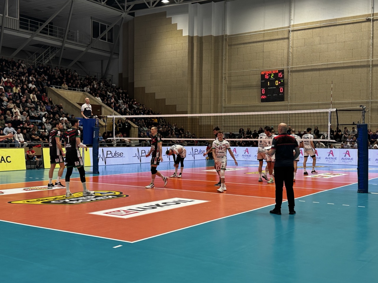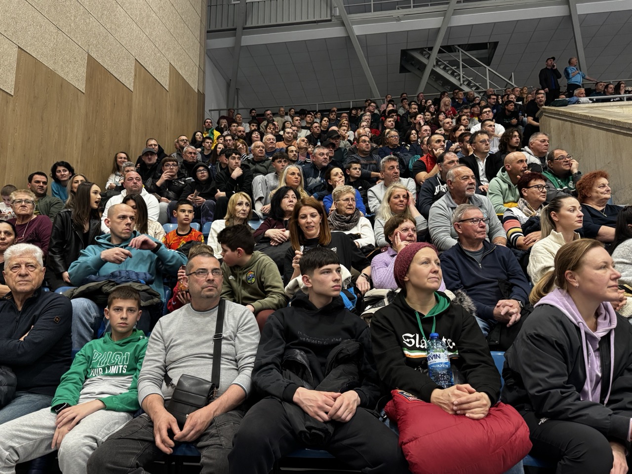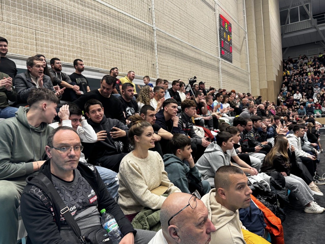 Атмосферата в залата бе изключително емоционална, като близо 1500 зрители не спряха да аплодират и подкрепят своите фаворити през целия мач. Силната енергия от трибуните допринесе за още по-напрегнат и зрелищен двубой, който оправда очакванията на волейболните привърженици.