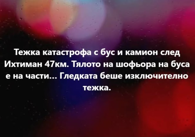 "Тялото на шофьора на буса е на части… Гледката беше изключително тежка. Съболезнования на близките. Колеги, моля ви, внимавайте!", коментира пътуващ по трасето.