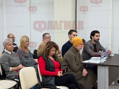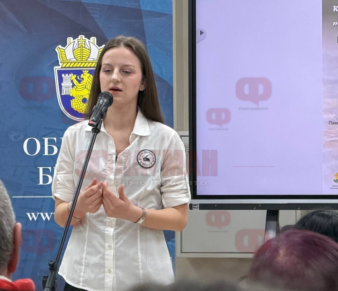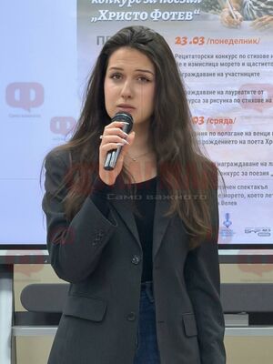 На предпоследния ред, до вратата репортер на Флагман.БГ разпозна две важни гостенки на честването на рождения ден на поета – Благовещение. Впрочем Фотев е роден на 25 март 1934 г. и националният конкурс тече именно в тези три дни, като кулминацията е на 25-ти.