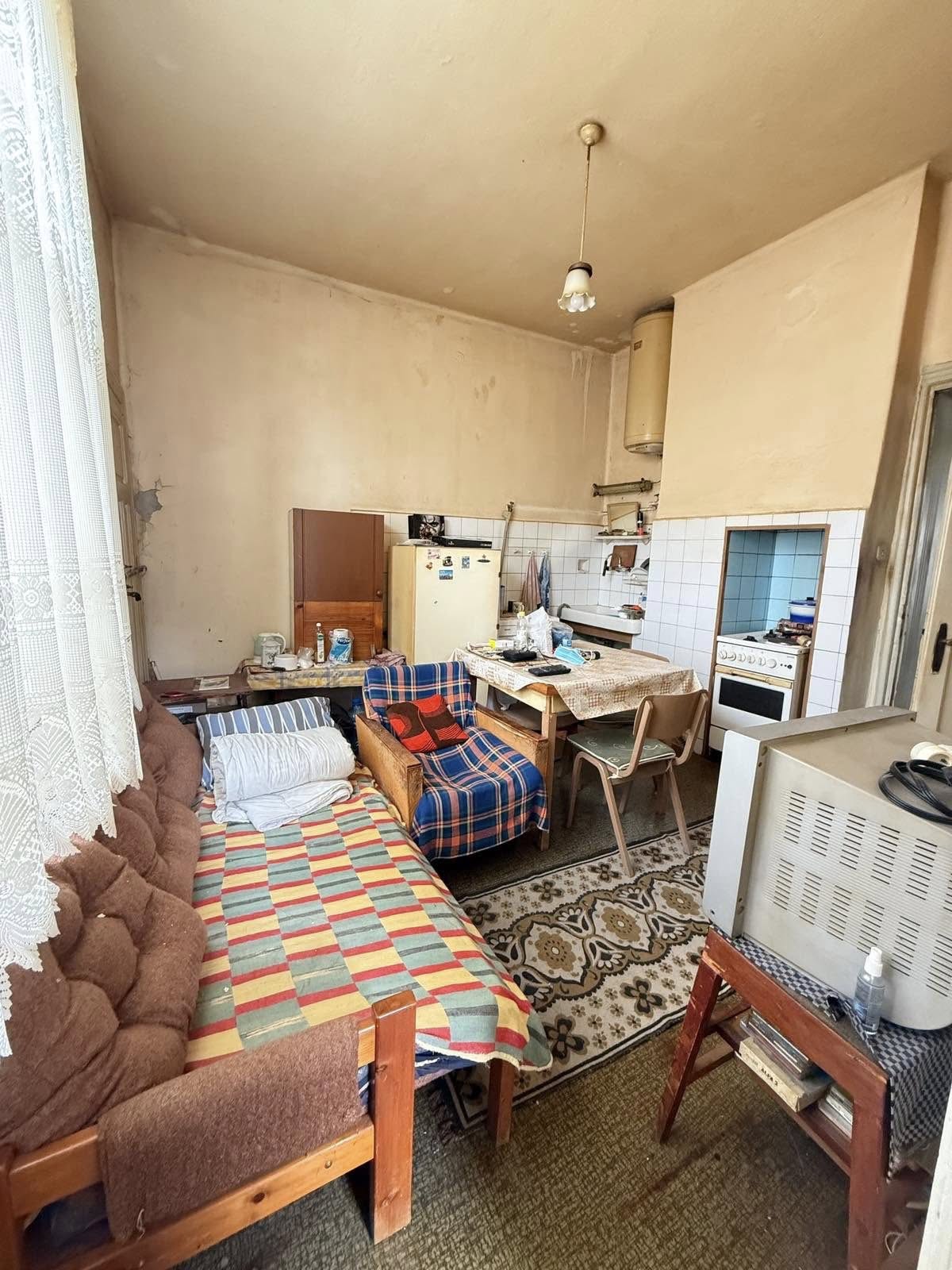По стените и тавана личат следи от старо овехтяване, а цялостното усещане е за жилище, което не е минавало през сериозно обновяване от поне 3-4 десетилетия.