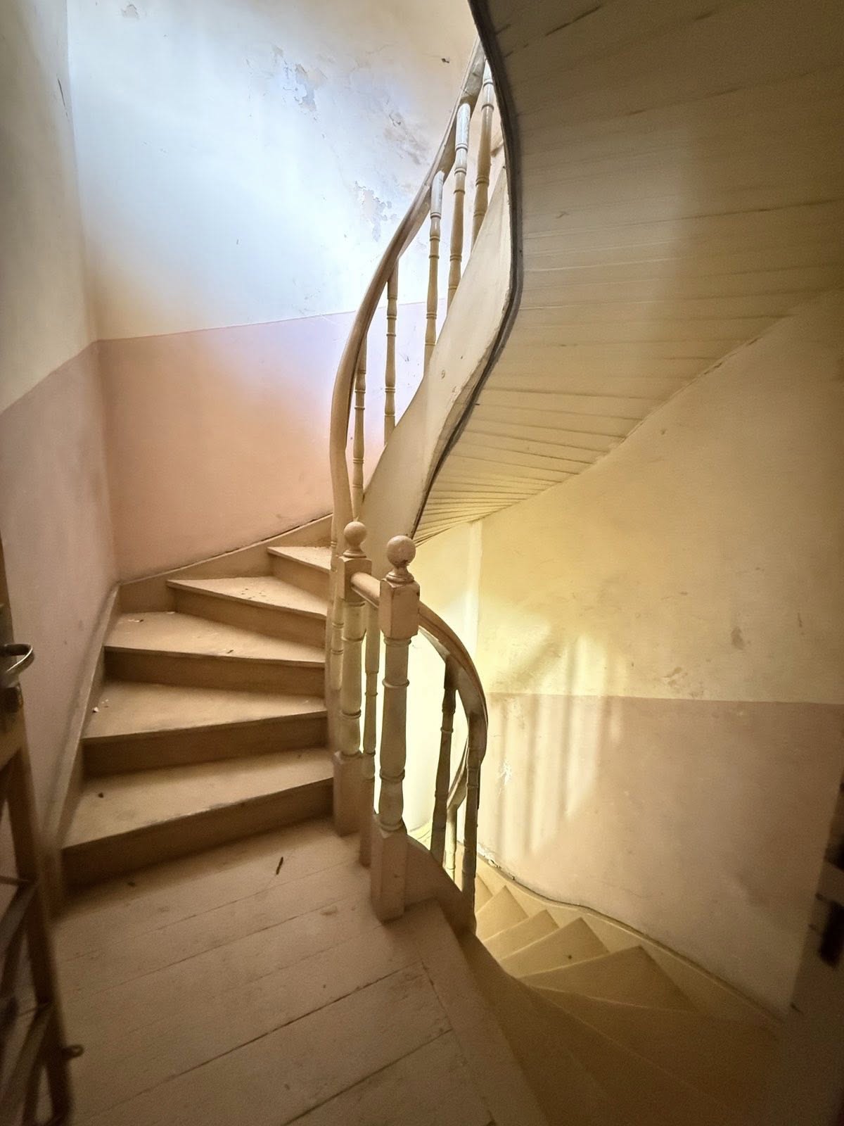 Сградата очевидно е стара, без асансьор, а достъпът до имота става по дървено стълбище, което носи чар за любителите на стара архитектура, но трудно оправдава подобна цена, когато поддръжката на общите части е на толкова ниско ниво.