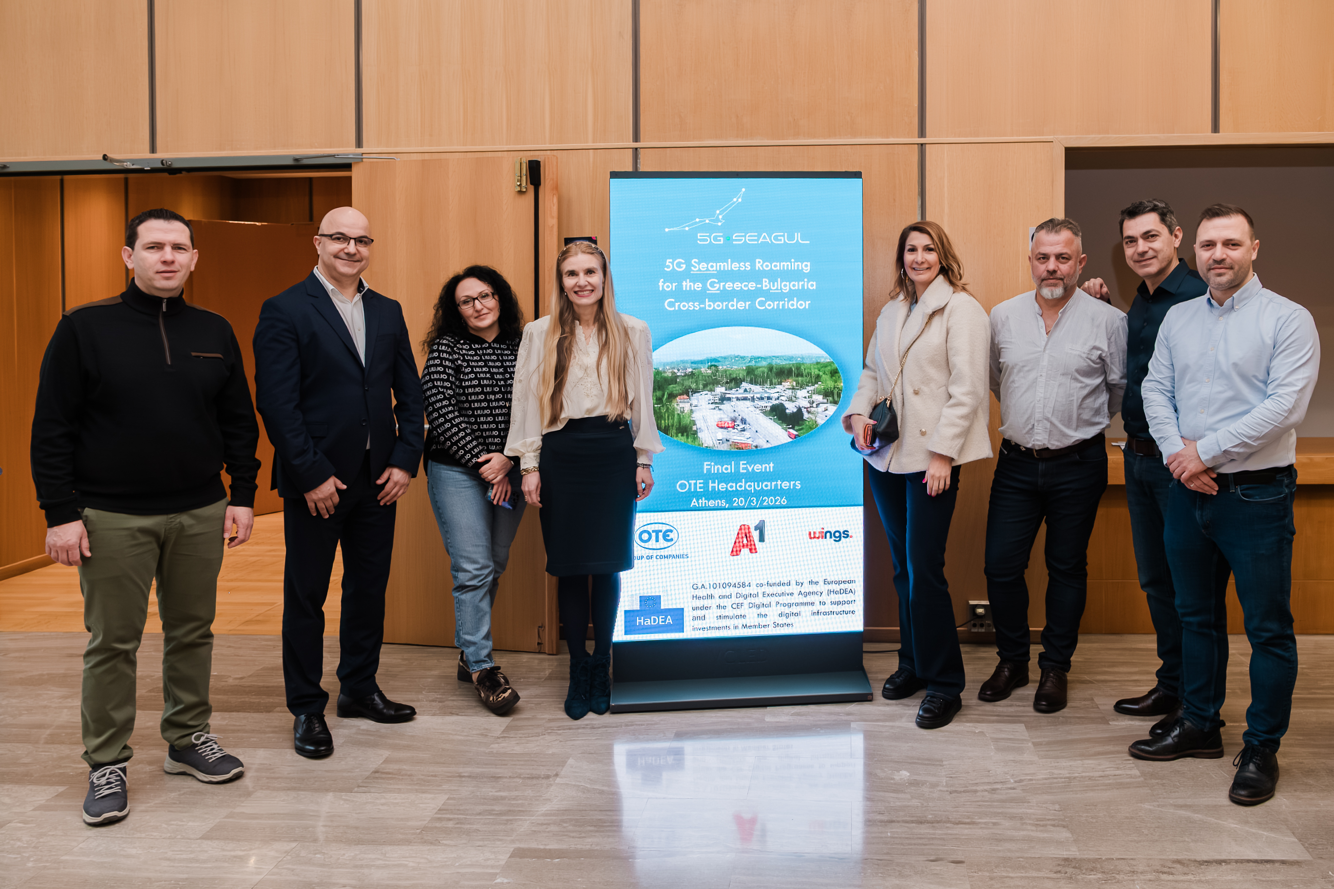 В заключителното събитие на проекта от българска страна участваха Георги Коджаиванов, директор „Конвергентна мрежа и услуги“ и Христина Бурдашева, старши директор „Правна и регулаторна политика“ в А1, и Златина Николова, директор „Дигитална свързаност“, Министерство на транспорта и съобщенията. Заедно с представители на партньорските организации WINGS и COSMOTE, те обобщиха резултатите от съфинансирания от EС проект 5G SEAGUL в присъствието на Танос Каскаманидис, съветник по проекта 5G SEAGUL, HaDEA – CEF Digital.