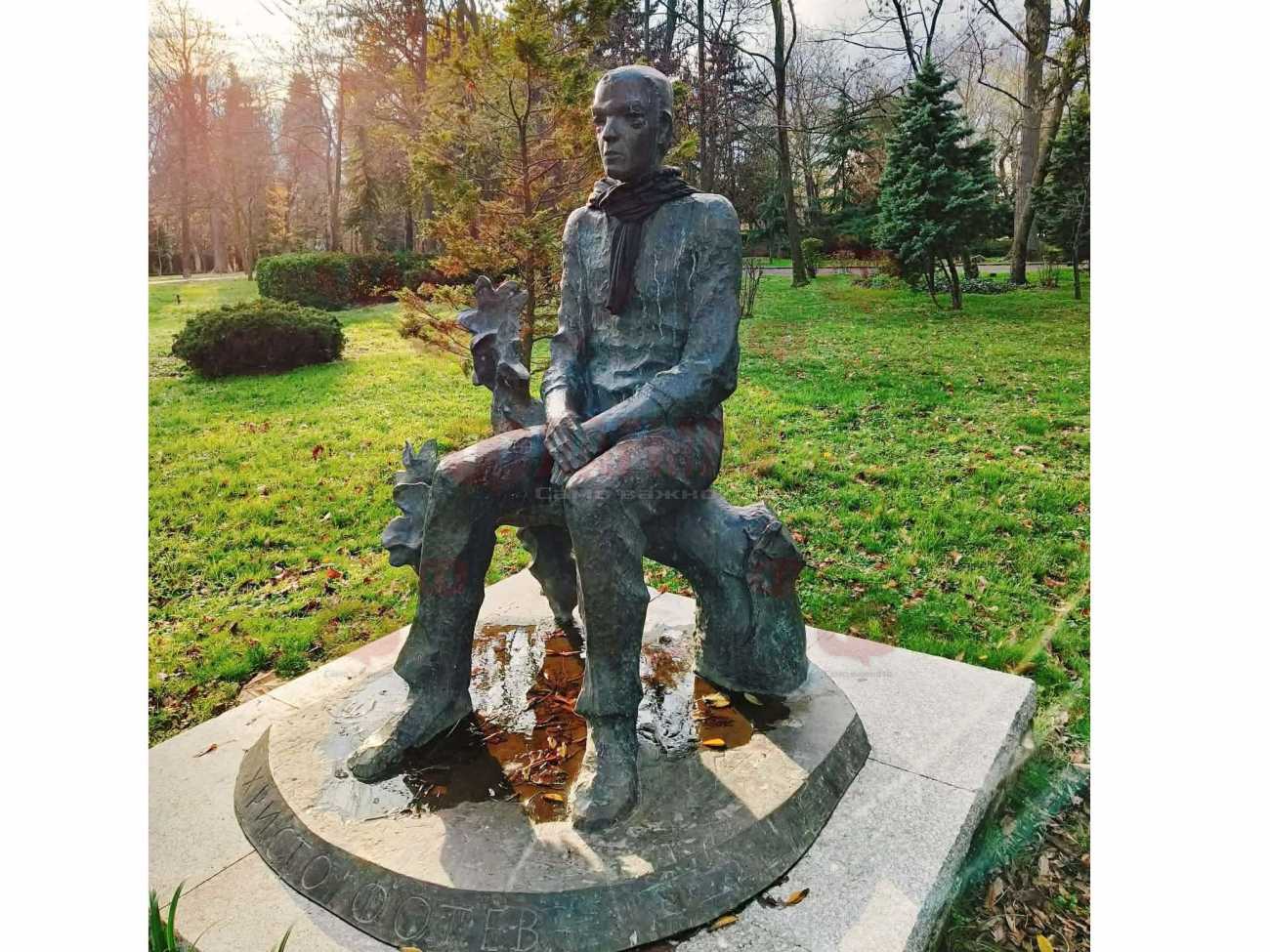 Поетът е седнал. С изправен гръб. С ръце, отпуснати спокойно върху коленете. Не позира. Не се извисява. Не сочи с пръст към бъдещето, както правят други паметници, натоварени с идеология и патос. Той просто гледа морето. Сякаш го слуша.