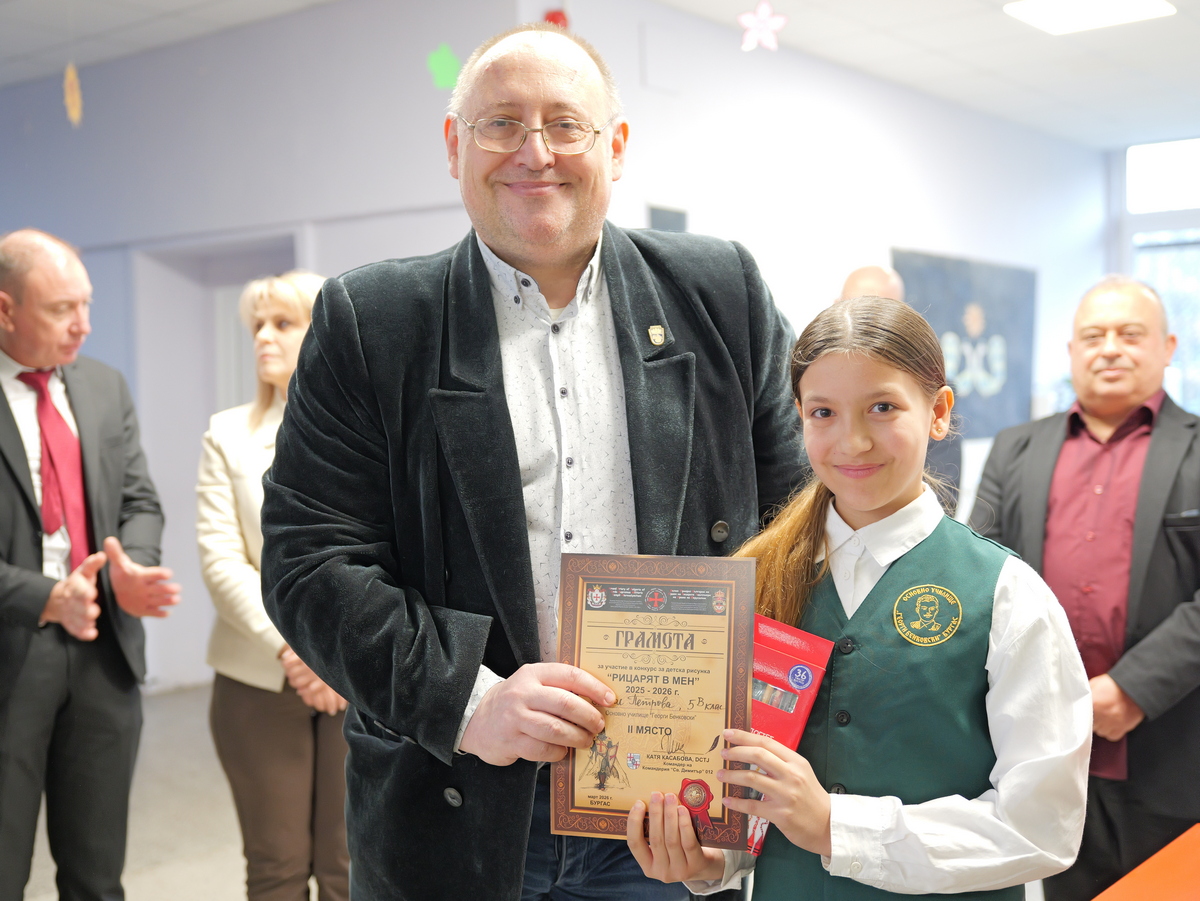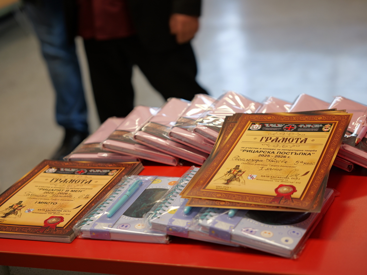 Орденът на рицарите тамплиери на Йерусалим, Велик Приорат в България, отличи най-талантливите художници и писатели сред бургаските ученици от 5-ти до 11-ти клас, които ще се състезават в Националния кръг от конкурсите за рисунка "Рицарят в мен" и за литература - "Рицарска постъпка". Наградите на лауреатите от ОУ "Георги Бенковски" връчиха председателят на Общинския съвет в Бургас Михаил Хаджиянев и директорът на Дирекция "Образование и младежки политики" Катя Мишева.