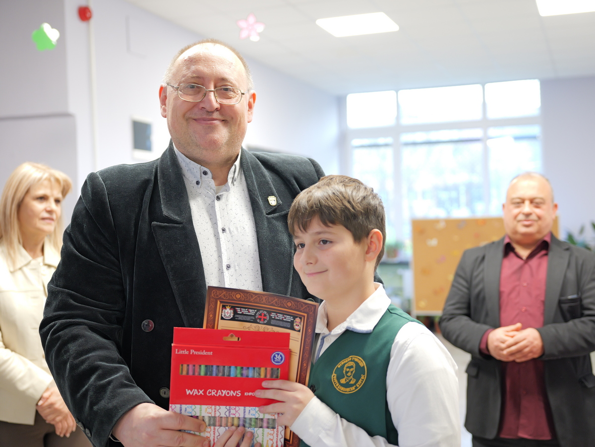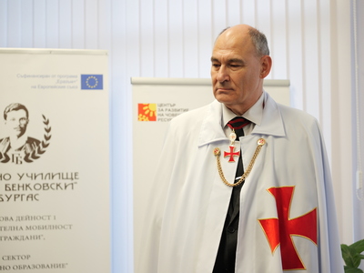 Училищното ръководство, с директор Петко Георгиев, посрещна родителите на участниците в надпреварата за постижения в областта на изобразителното изкуство и писмената реч с официална церемония, която бе проведена съвместно с Бургаската командерия "Свети Димитър", която е част от Ордена на тамплиерите у нас.
