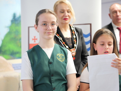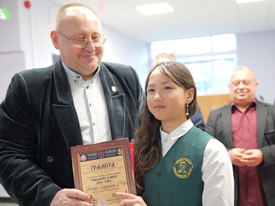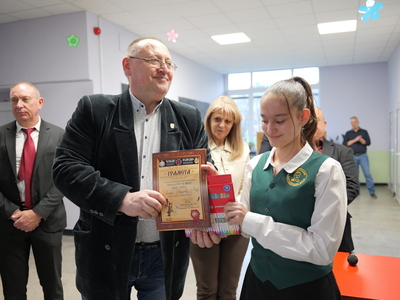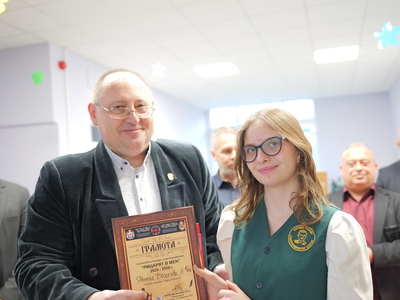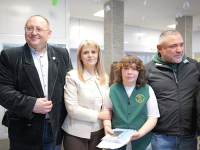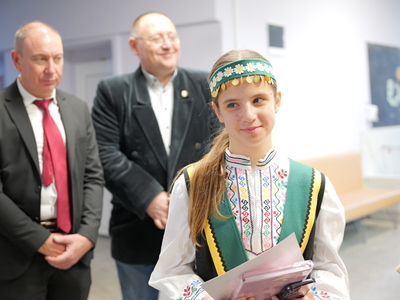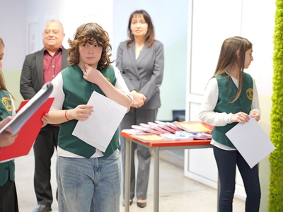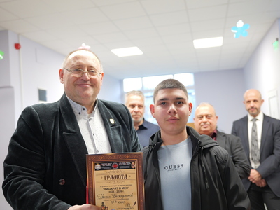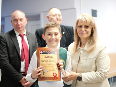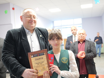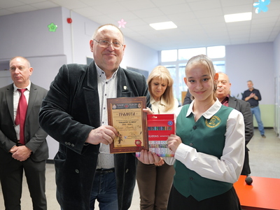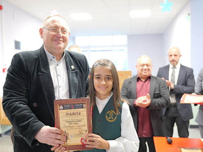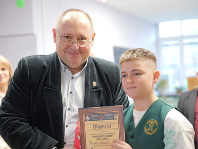 Председателят на Общинския съвет Михаил Хаджиянев и директорът на Дирекция "Образование и младежки политики" в Община Бургас Катя Мишева наградиха най-талантливите