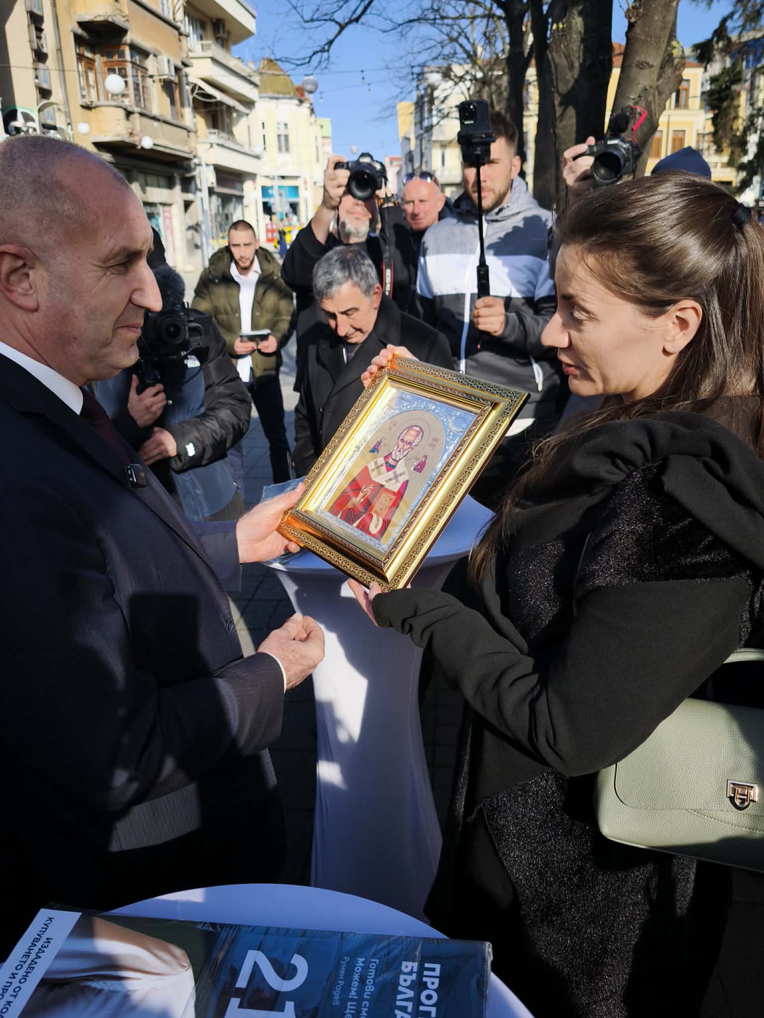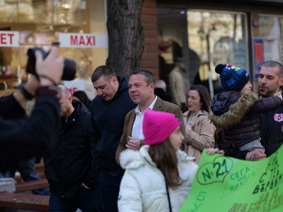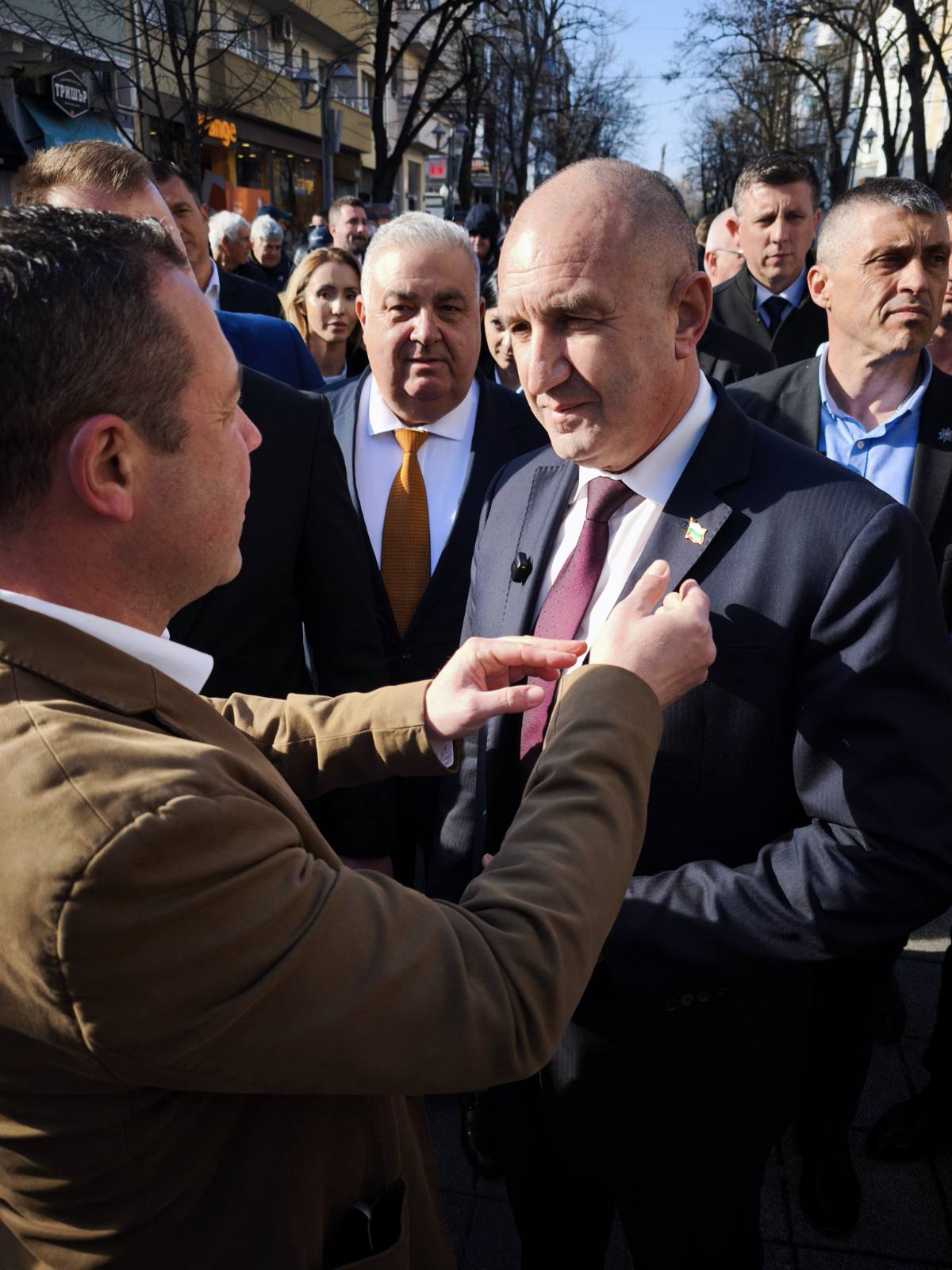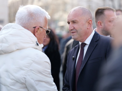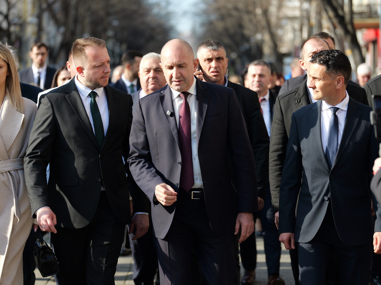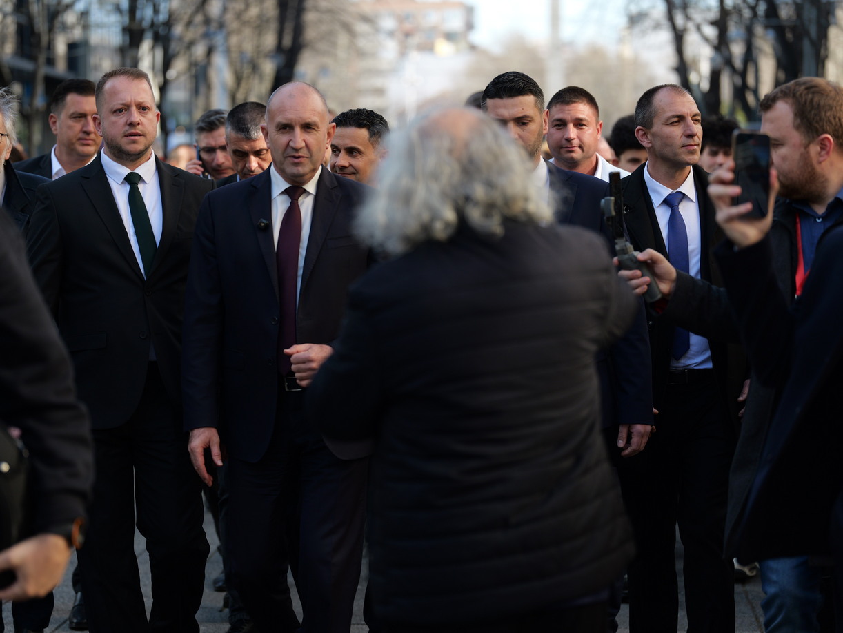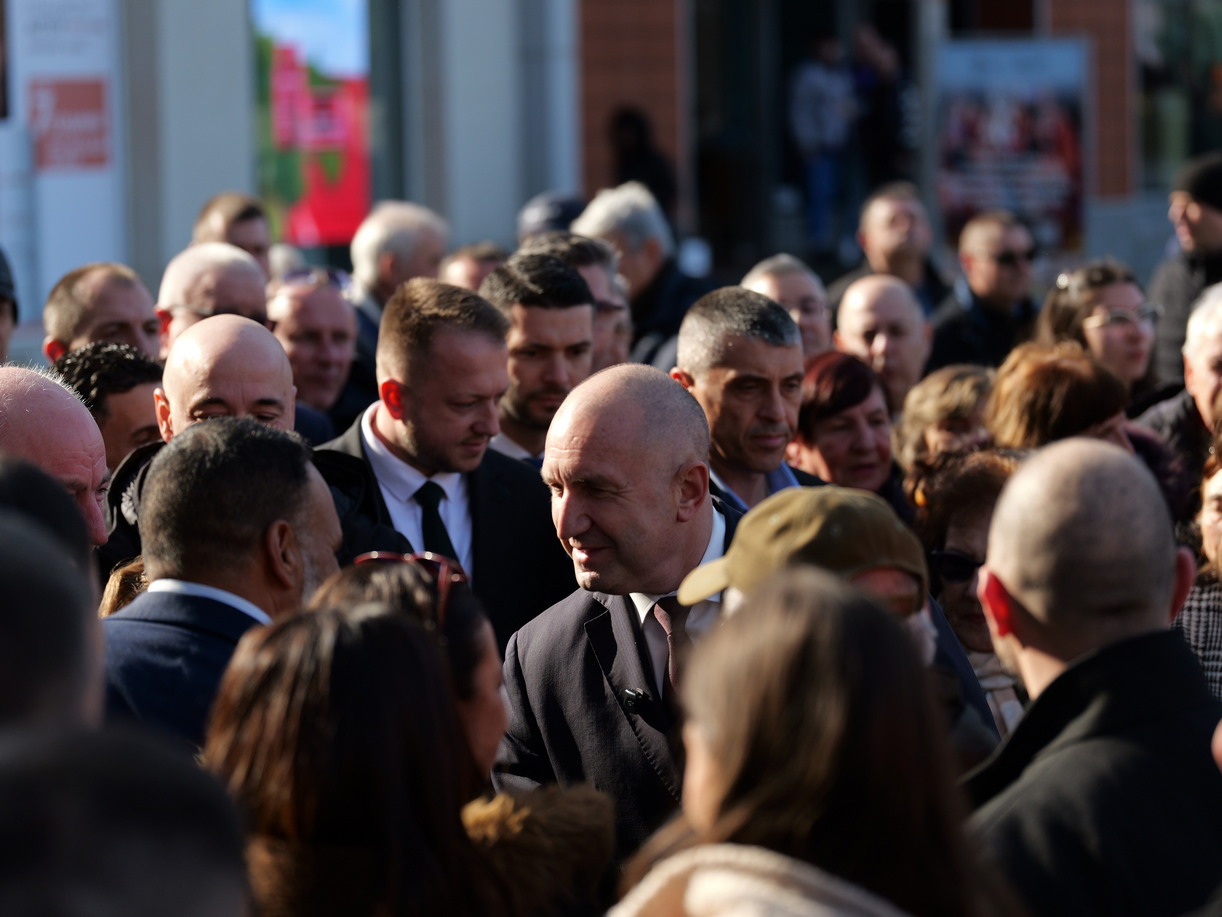 Около 40 минути отне на Румен Радев да премине 500-те метра от „Триа Сити Център“ до хотел „България“, където след час той има нова среща с избирателите.