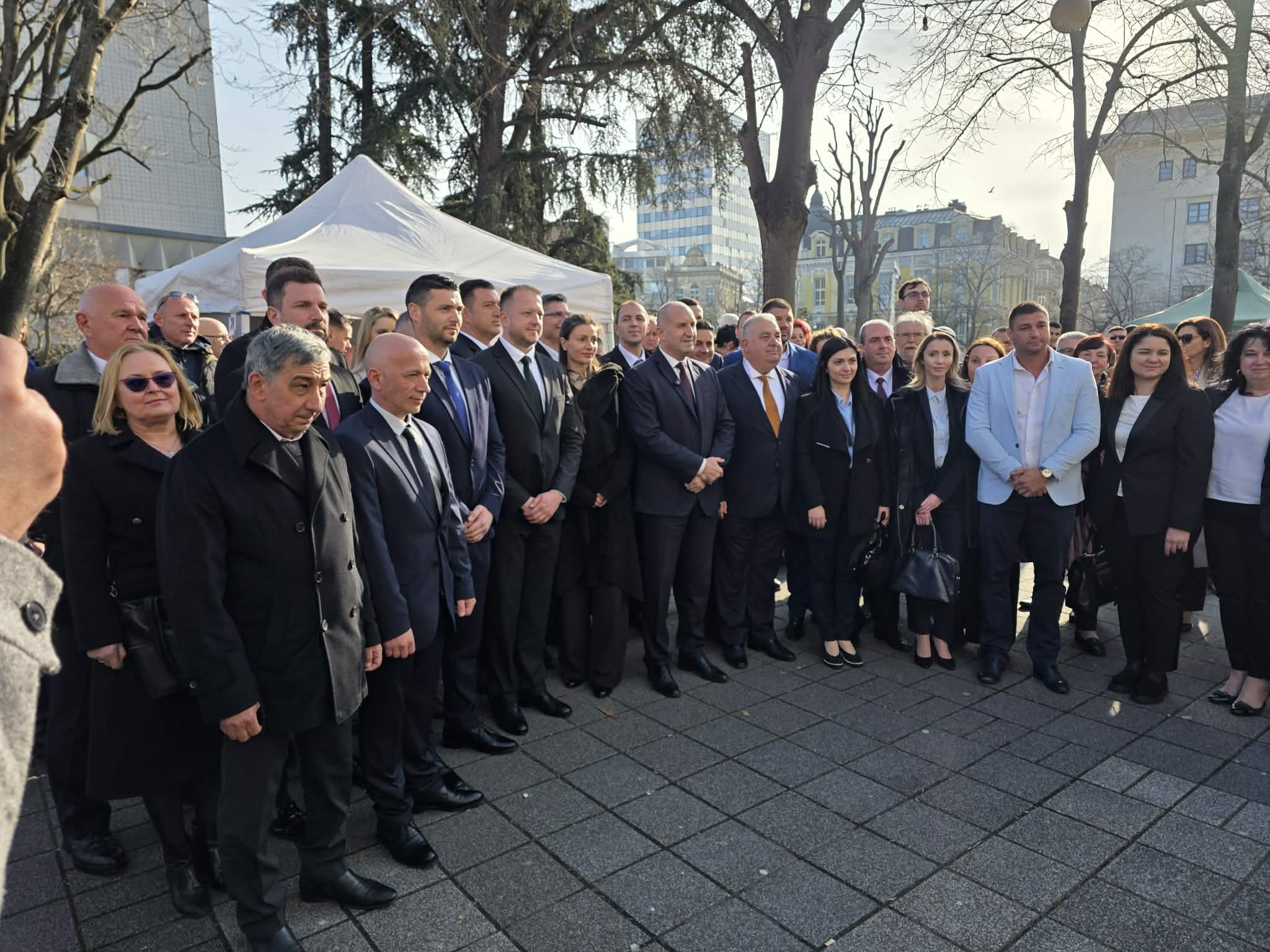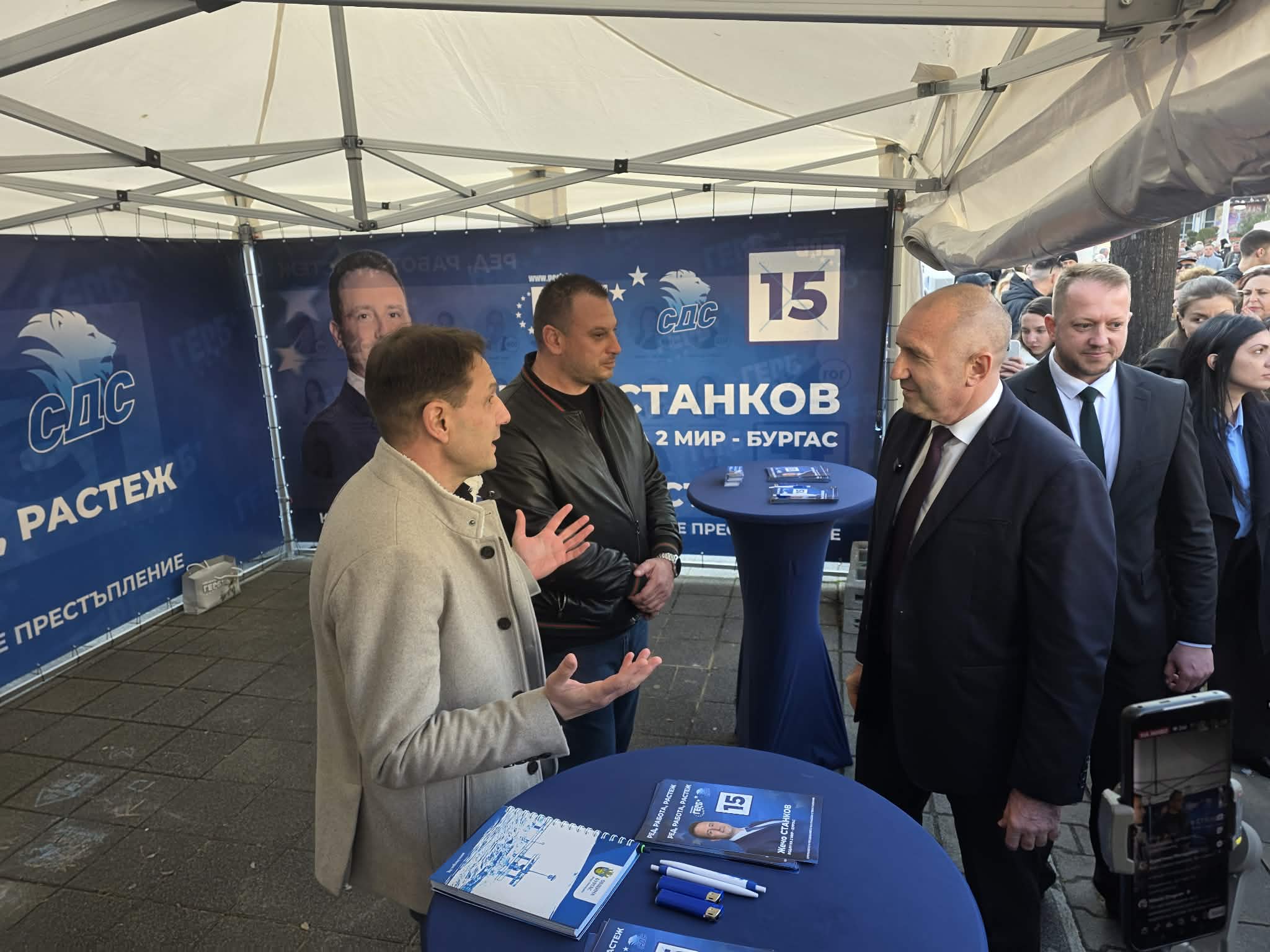 В 15:40 часа той пристигна на ул. „Сливница“ до Триа Сити Център, където го чакаха кандидат-депутатите от партийната му листа, както и симпатизанти на държавния глава. Сред тях личаха знакови имена от различни политически среди.