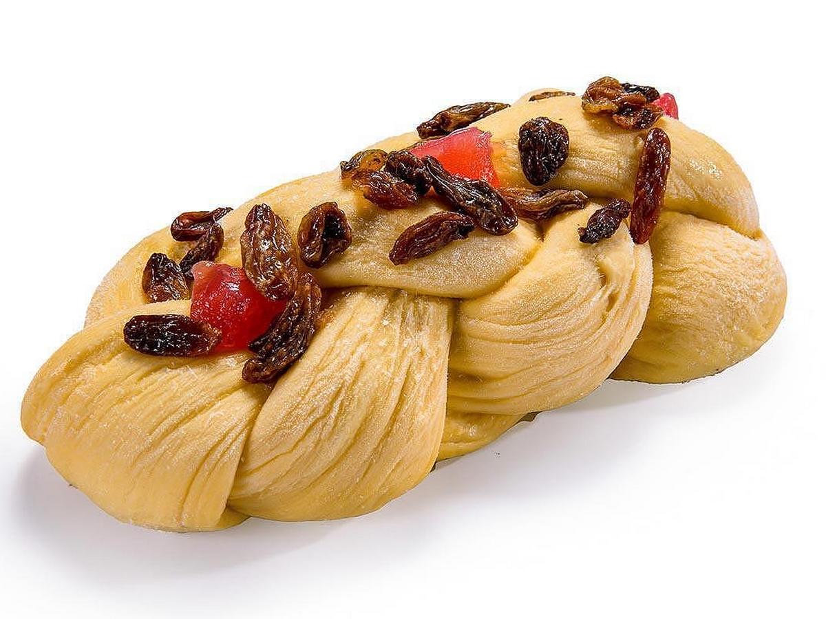 Готовото тесто се разделя и оформя на фитили, които се разточват. Вътре се поставят стафидите, локумът и боровинките, след което се оформят отново и се сплитат.