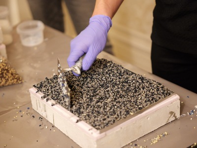 Един от акцентите на събитието беше каменният килим Stone Carpet, който също няма аналог в производството на строителни материали у нас. Този продукт, използван за екстериорни решения, предлага не само красота и елегантност, но и трайност в агресивни външни условия. Изработен от висококачествени материали, Stone Carpet е идеален за различни приложения в екстериора на хотели, вили и публични пространства, като предлага голяма степен на персонализация в дизайна.