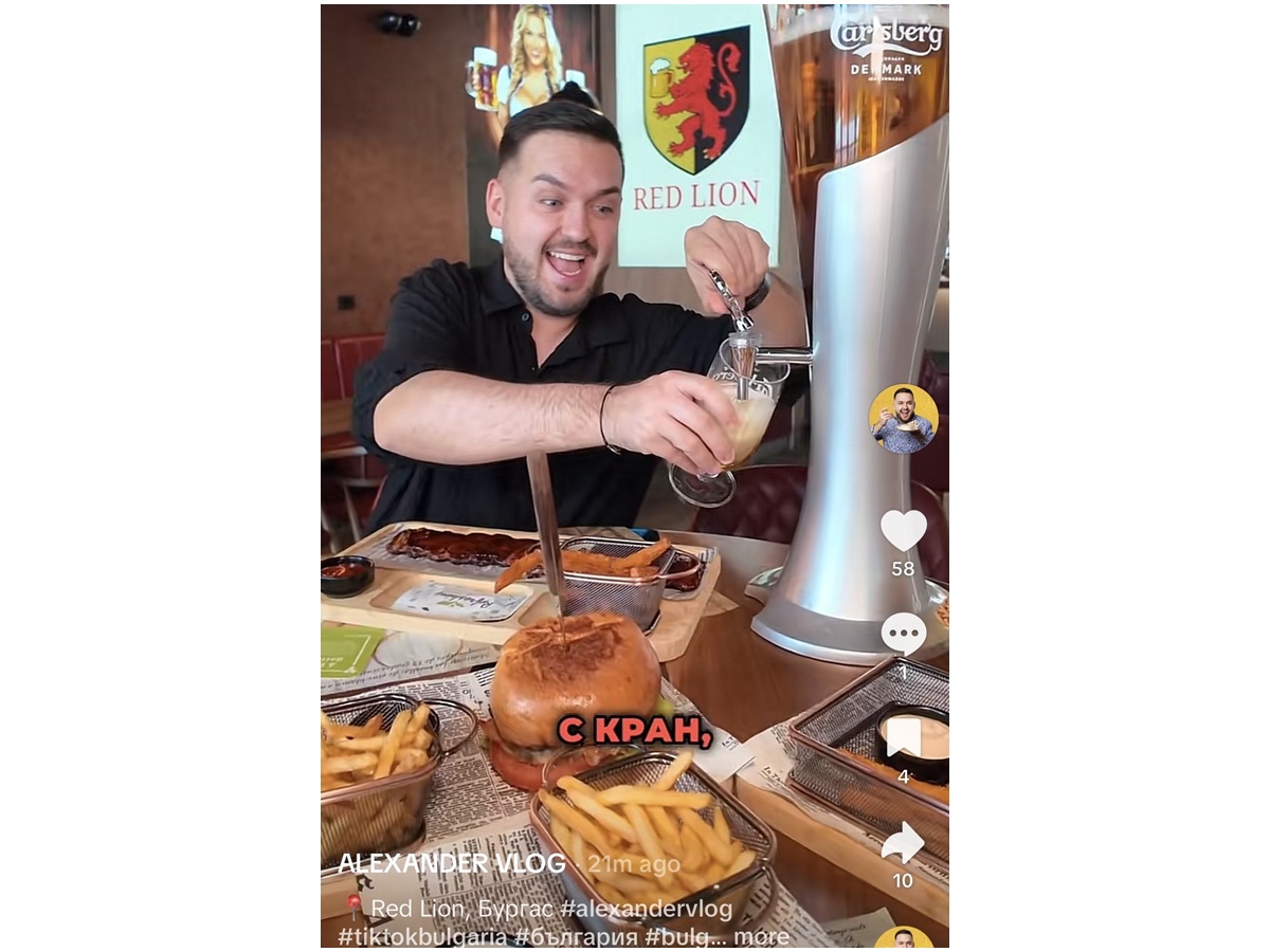 Един от най-разпознаваемите кулинарни влогъри в България - Александър Vlog - посети Бургас и включи в маршрута си едно от най-новите заведения в града - Red Lion в Central Park.