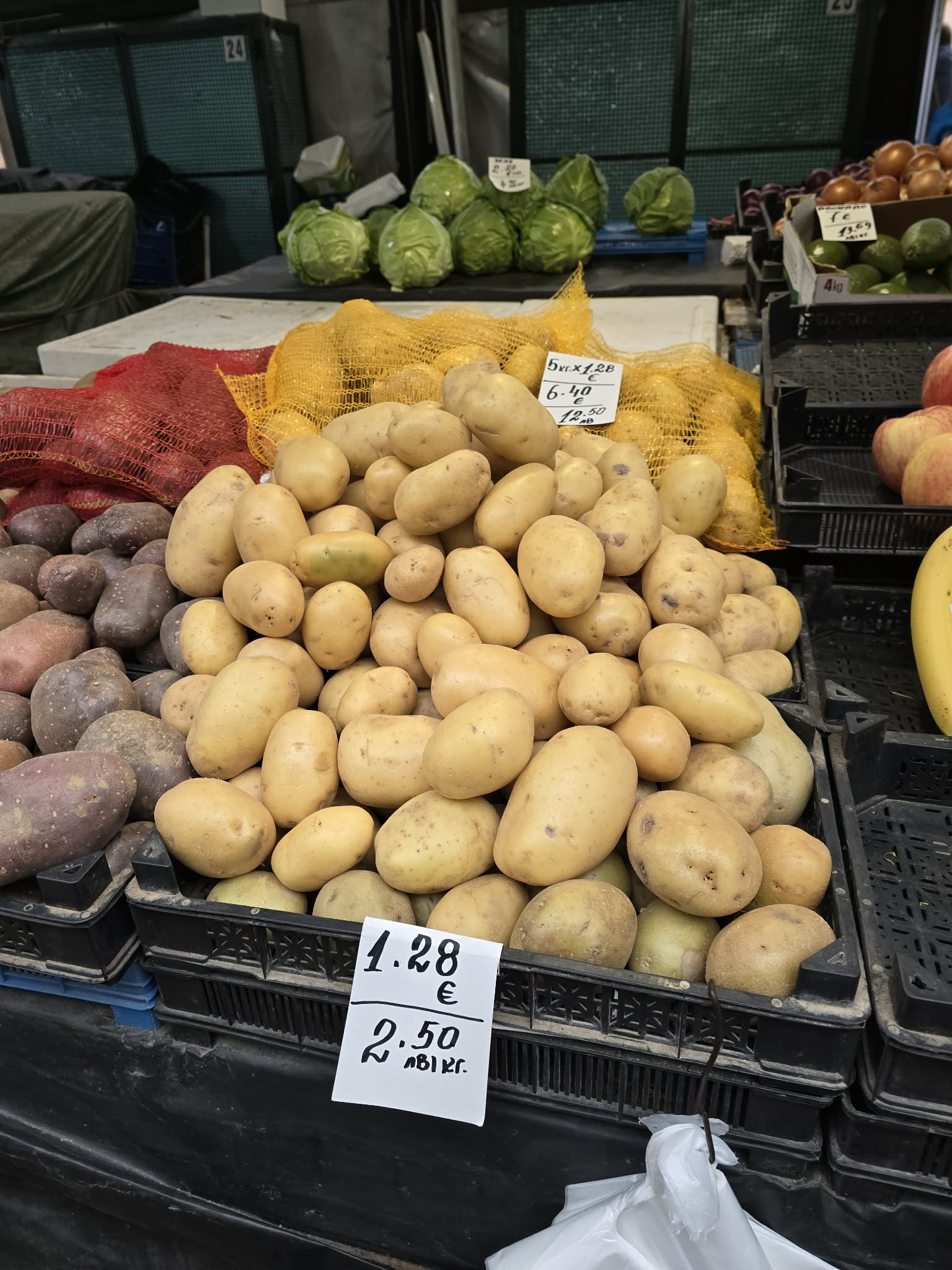 Актуалните цени на „Краснодар“ в момента вървят в широк диапазон. При картофите има няколко ценови нива според вида и начина на предлагане. Старите картофи се продават по 1 евро за килограм, което е 1,96 лв. Митите картофи стигат 1,30 евро или 2,50 лв. за килограм. Има и пакетирани количества, като 5 килограма се предлагат за 6,40 евро или 12,50 лв. На други места се виждат и оферти от 5,10 евро за чувал, равни на 10 лева. Това ясно показва, че на пазара в Бургас картофите не се движат на стряскащи стойности, а в напълно обозрим диапазон според сорта и качеството.