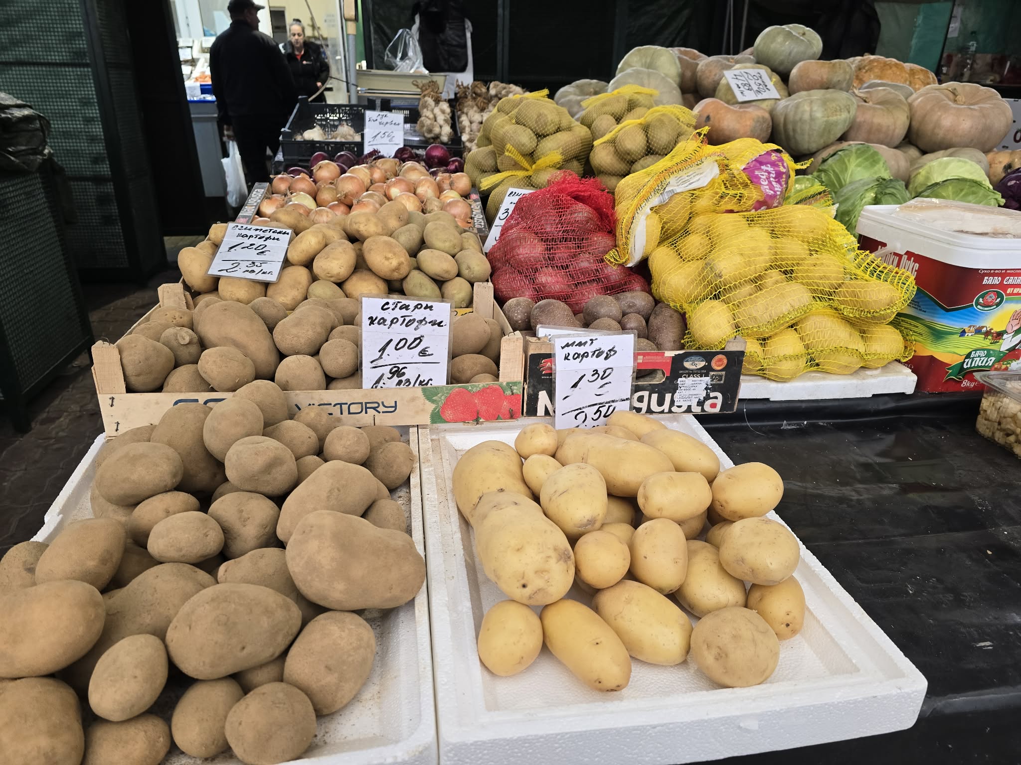 Проверката ни на „Краснодар“ показва, че от картофите, които предизвикаха истерия, няма. Не се забелязват и други плодове и зеленчуци, които да се предлагат на по-високи цени от обичайните на пазара. Има разлики между сергиите, има по-скъпи и по-достъпни предложения.