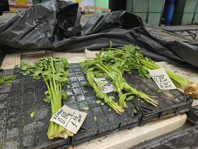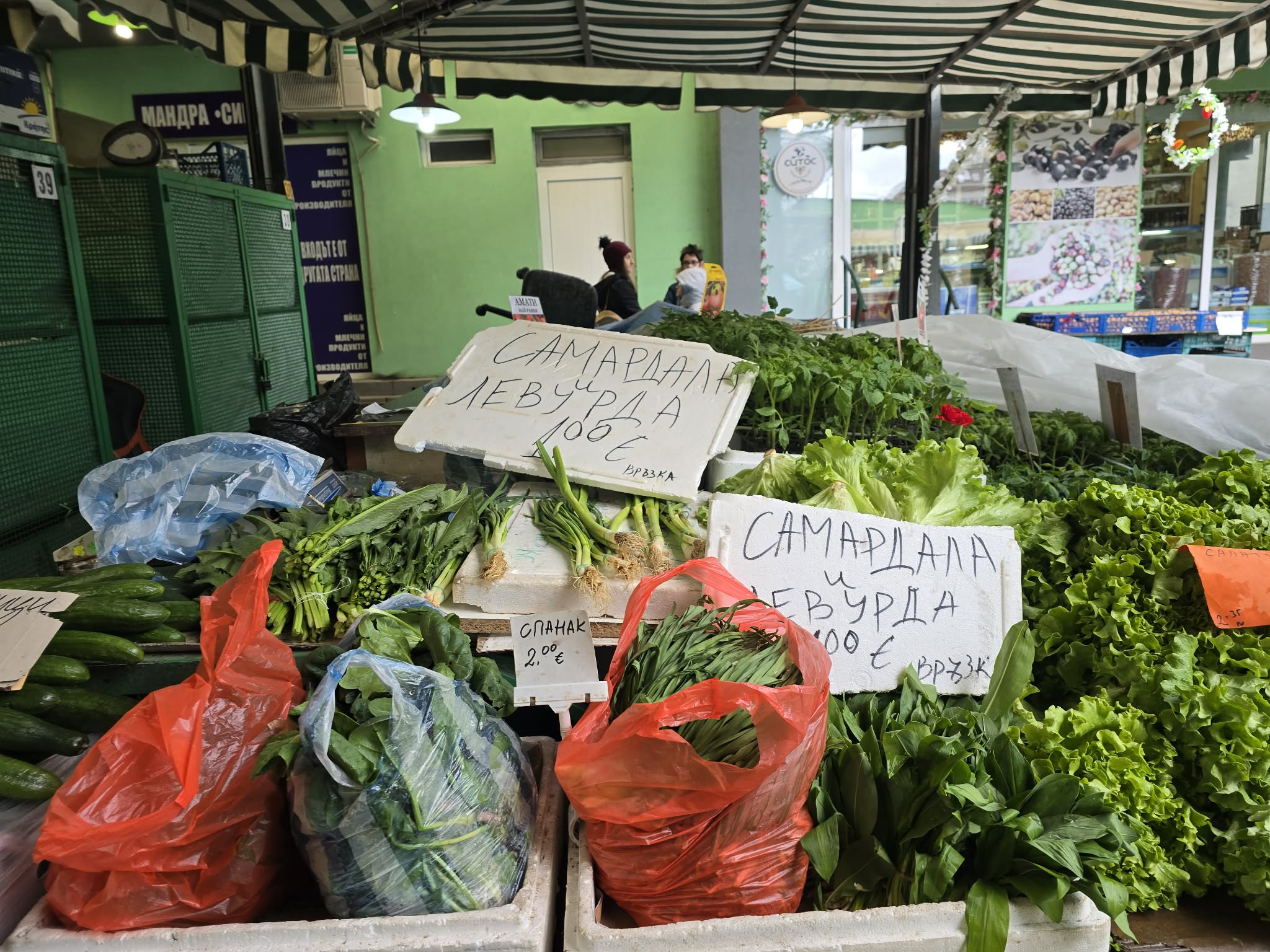 По сергиите вече се виждат и типично пролетни продукти. Репичките се продават за 1 евро или 1,95 лв. за връзка. Спанакът е обявен на 2 евро. Самардала и левурда се предлагат по 1 евро за връзка. Тези продукти традиционно бележат началото на по-свежия сезон на пазара.