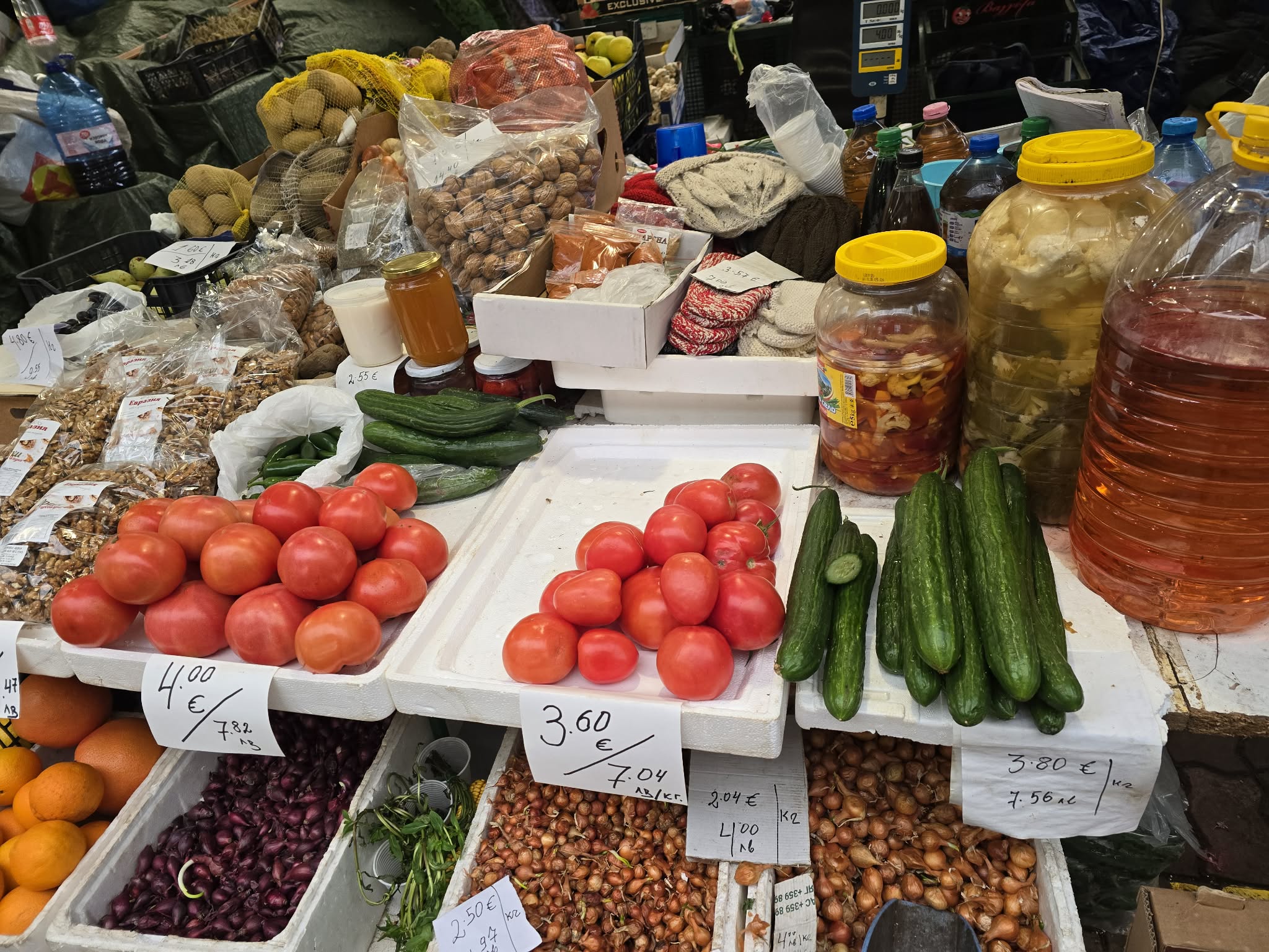Подобна е картината и при останалите основни зеленчуци. Краставиците са сред продуктите с най-видима разлика между отделните сергии. На едни места килограмът е 2,50 евро или 4,89 лв., а на други достига 3,80 евро или 7,56 лв. Доматите също държат по-високи нива. По щандовете се виждат цени от 3,60 евро или 7,04 лв. за килограм до 4 евро или 7,82 лв. за килограм. Това ги нарежда сред по-скъпите зеленчуци в момента, но дори и при тях не става дума за необичайни или шокови стойности за сезона. А за нормална картина спрямо сезона.