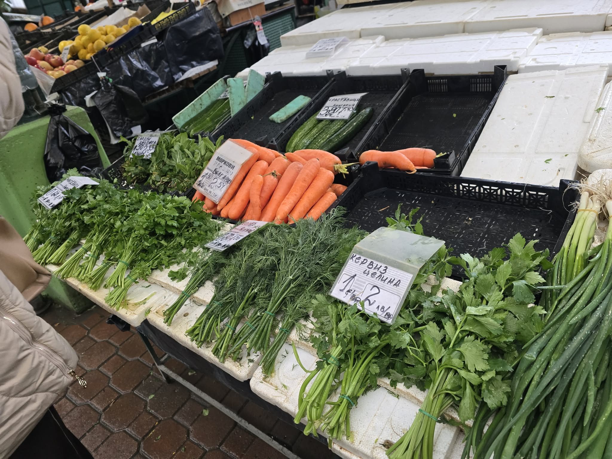 По табелите на морковите се виждат цени от 1,28 евро или 2,50 лв. за килограм, както и 1,30 евро или 2,54 лв. Марулите се продават за 1,10 евро или 2,15 лв. за брой, а на част от сергиите стигат 1,30 лв. Салатите и листните зеленчуци вече присъстват масово, но и при тях пазарът не показва изненадващи стойности.