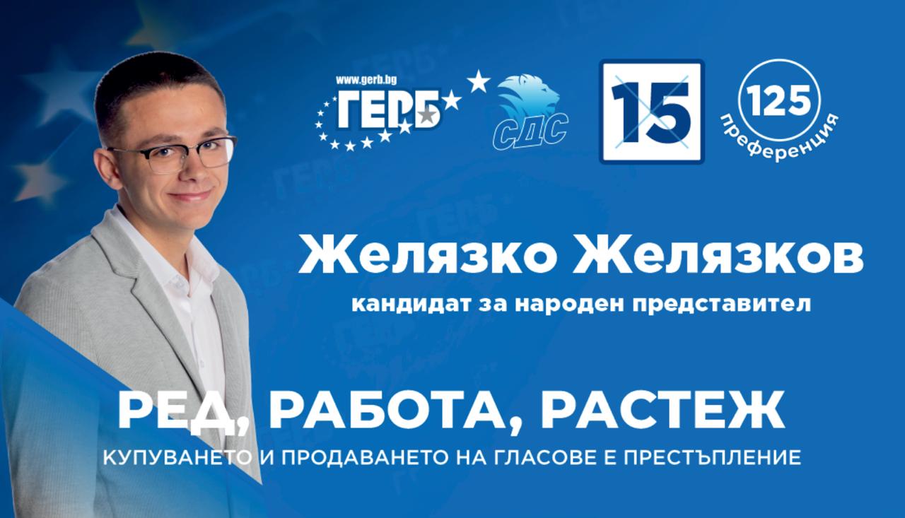 Желязко Желязков е на 23 години и е най-младият кандидат в листата на ПП ГЕРБ – Бургас. Завършил е ПГМЕЕ със специалност „Микропроцесорна техника“, има бакалавърска степен по „Стопанско управление“ и магистърска по „Управление и развитие на човешките ресурси“. Работи в Авиомузей Бургас. Това е първото му участие в листа на политическа партия. Влиза в кампанията с желание да допринася с енергия, отговорност и уважение към хората.