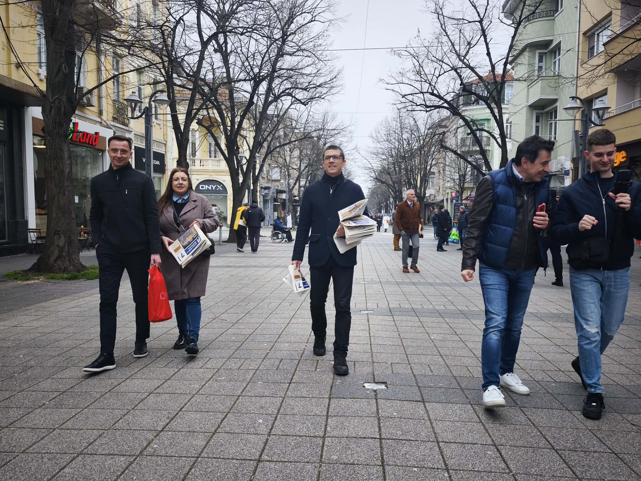 Всъщност едва в края на миналата седмица тук за пръв път дойде водачът Мирослав Иванов, който раздаваше вестници по ул. "Александровска", докато лидерът Асен Василев си правеше клипчета за социалните мрежи. Разходката на двамата продължи около 30-ина минути, след което те "отскочиха" до ст. "Черноморец" записаха ново клипче, чието послание така и не става ясно - какво точно искат да кажат, защо са там и какви са целите им.