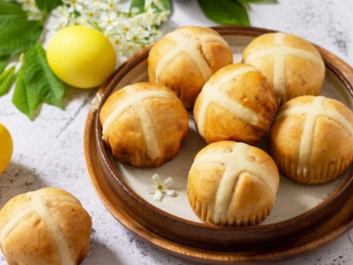 Великденските хлебчета се пекат в предварително загрята фурна на 180°C за около 20-25 минути до златист цвят. Хлебчетата могат да се изпекат и в по-големи формички за мъфини - тогава пълните формите с 2/3 от обема и хлебчетата стават по-равномерни, пише gotvach.bg